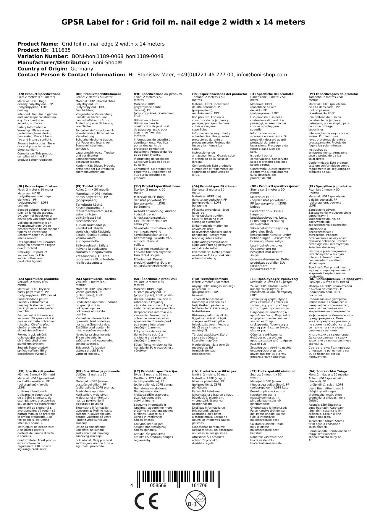 Cuireann ár scannán mogalra le imeall ingne cosaint is fearr ar fáil do do phlandaí, do láithreáin tógála, agus do thionscadail chaitheamh aimsire. Tá sé frithsheasmhach in aghaidh cuimilt, UV-resistant, agus uiscedhíonach, rud a fhágann go bhfuil sé oiriúnach le haghaidh úsáide fadtéarmaí lasmuigh. Roghnaigh an leithead agus an fad atá uait chun freastal ar do riachtanais aonair go foirfe. Gnéithe Táirge | Buntáistí | Feidhm | Sonraíochtaí Teicniúla | FAQ | Cén fáth Boni-Shop? | Léirmheasanna Custaiméirí