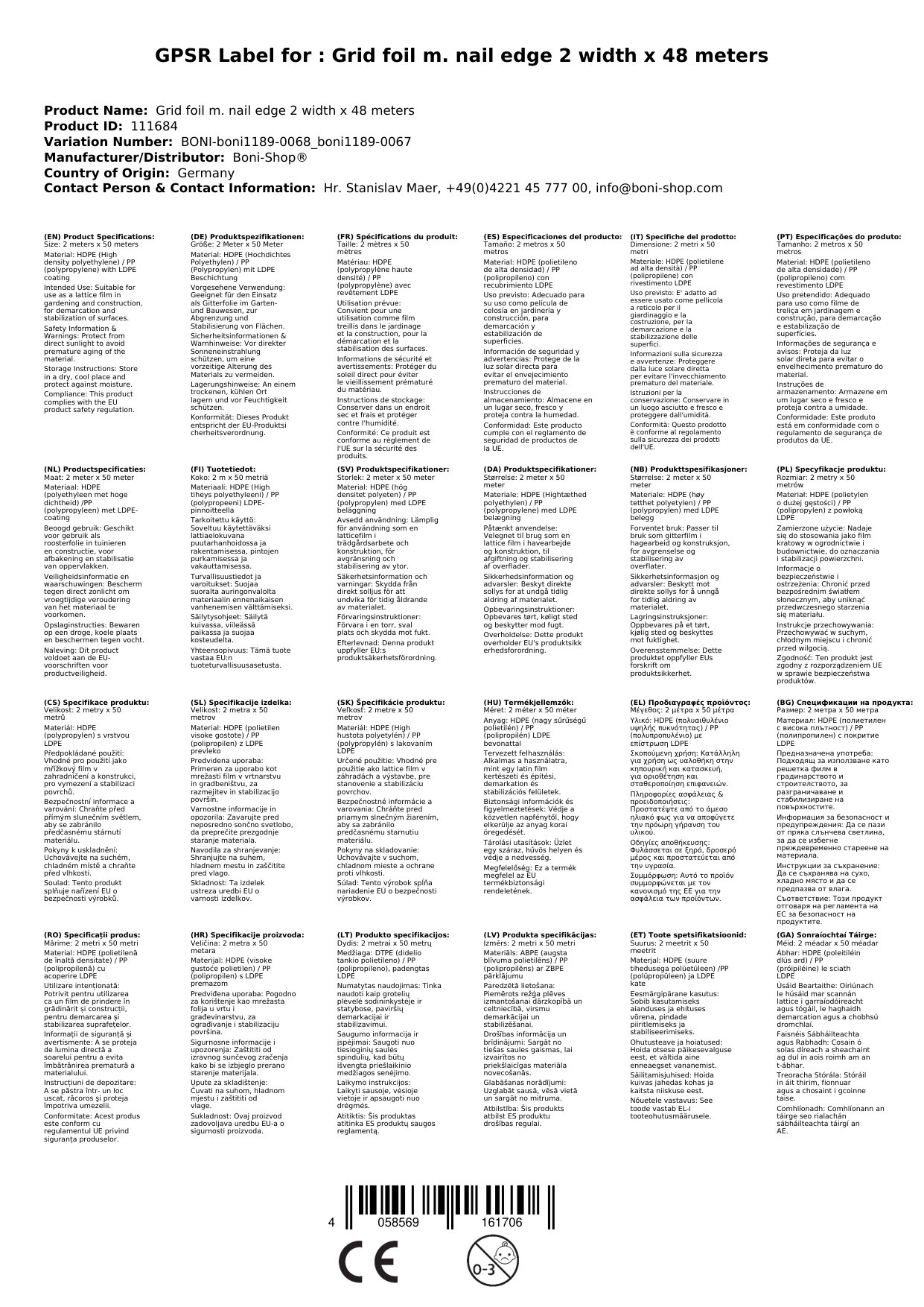 | HDPE/PP | Cumhdach LDPE | ca. 255-265 g/m² | ~700N/5cm | 300 Kly |