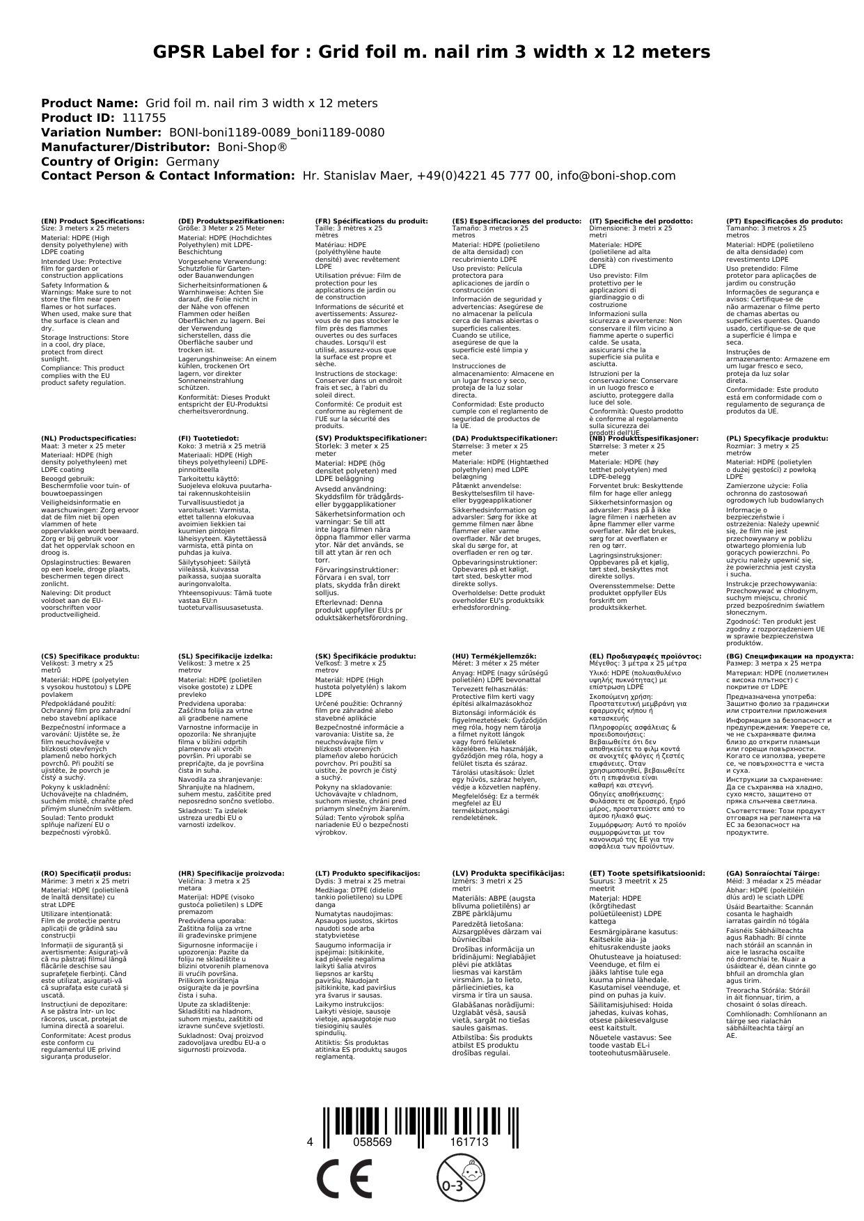 Gitterfolie m. Nagelrand 3 Breite x 12 Meter