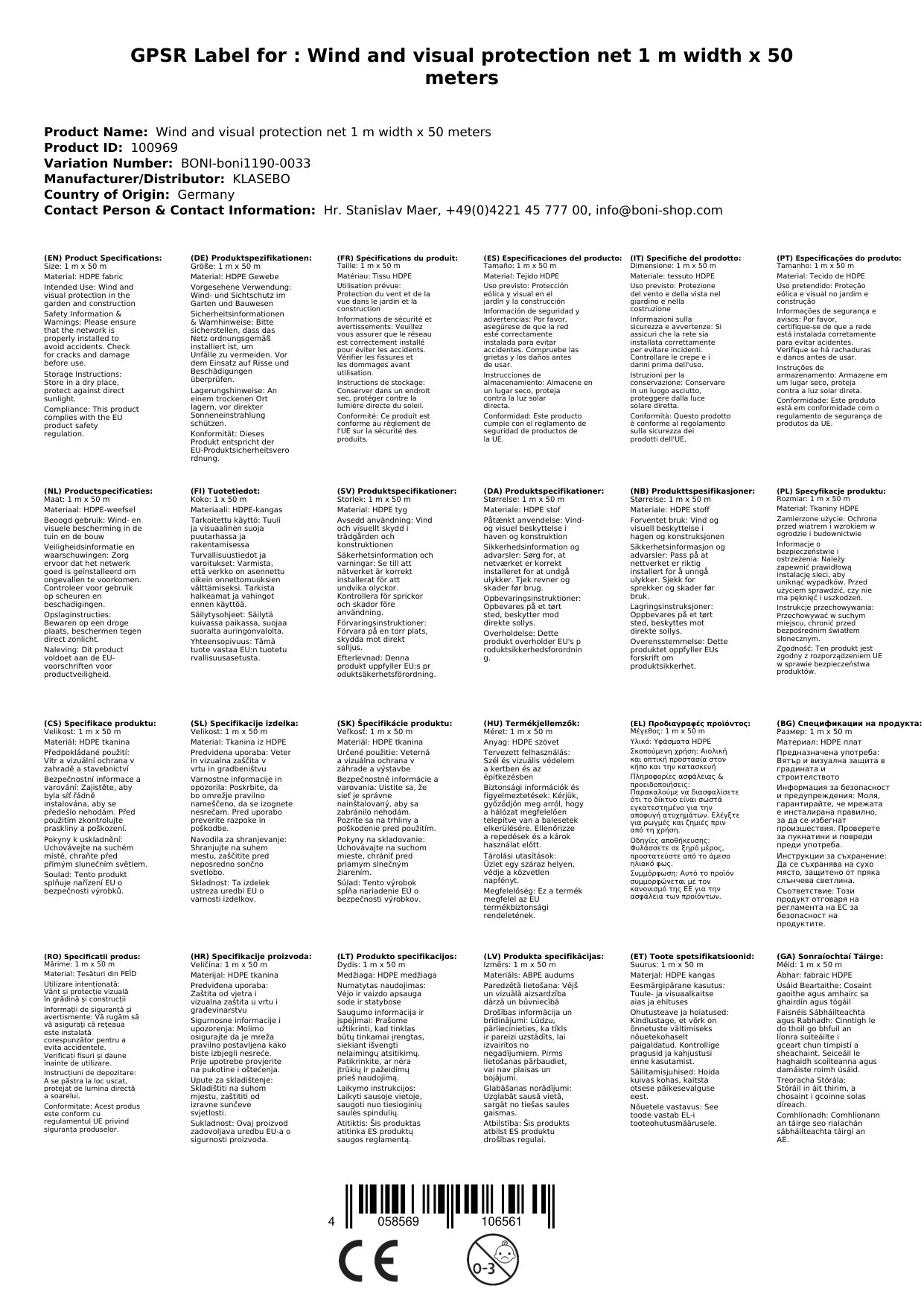 Líontán Príobháideachta agus Scáileán Gaoithe HDPE, 1m x 50m, Glas