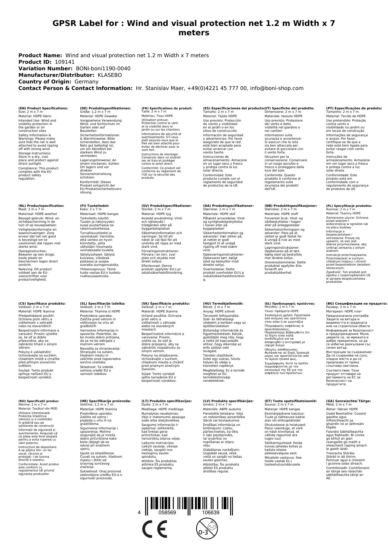 Cuireann ár nGlan Cosanta Gaoithe & Scáileán Príobháideachta cosaint agus príobháideacht optamach ar fáil duit. Le leithead 1.2 méadar agus fad 7 méadar, tá sé ilúsáideach. Cinntíonn an fhabraic HDPE cniotáilte friotaíocht ard cuimilt agus cobhsaíocht UV. Cén fáth go bhfuil sé seo tábhachtach duit: Faigheann tú táirge buan agus láidir a chosnaíonn tú go hiontaofa ar an ngaoth agus ar radharcanna.