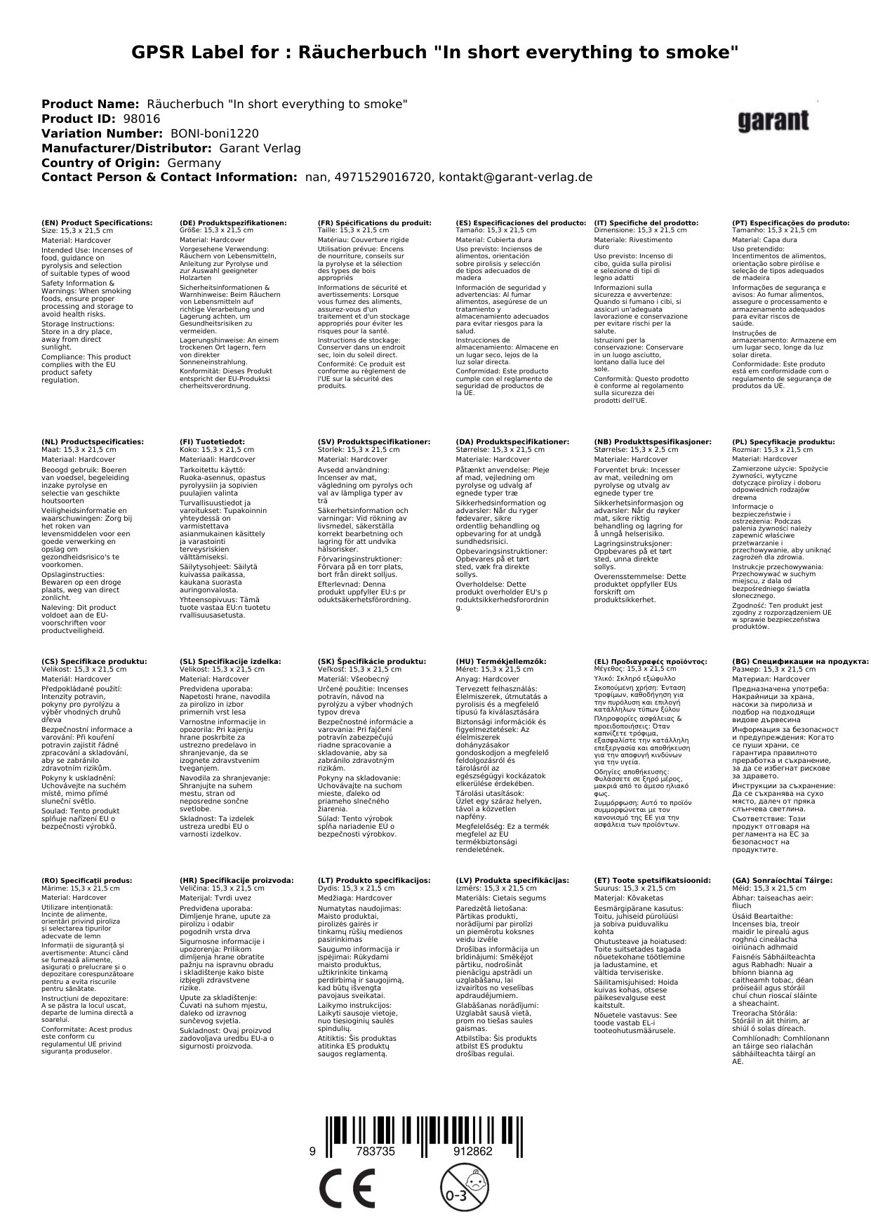 Cuireann an leabhar caitheamh tobac seo réamhrá cuimsitheach ar fáil duit ar shaol na caitheamh tobac. Le 176 leathanach agus go leor léaráidí, is é an compánach idéalach é do thosaitheoirí agus do lucht caitheamh tobac ócáideach. Faigh amach gach rud faoi na modhanna caitheamh tobac éagsúla, an t-adhmad caitheamh tobac ceart a roghnú, agus oidis bhlasta a ullmhú. Cén fáth a bhfuil sé seo tábhachtach duit: Faigheann tú an t-eolas riachtanach chun tosú ag caitheamh tobac láithreach agus do shárshaothair cócaireachta féin a chruthú.