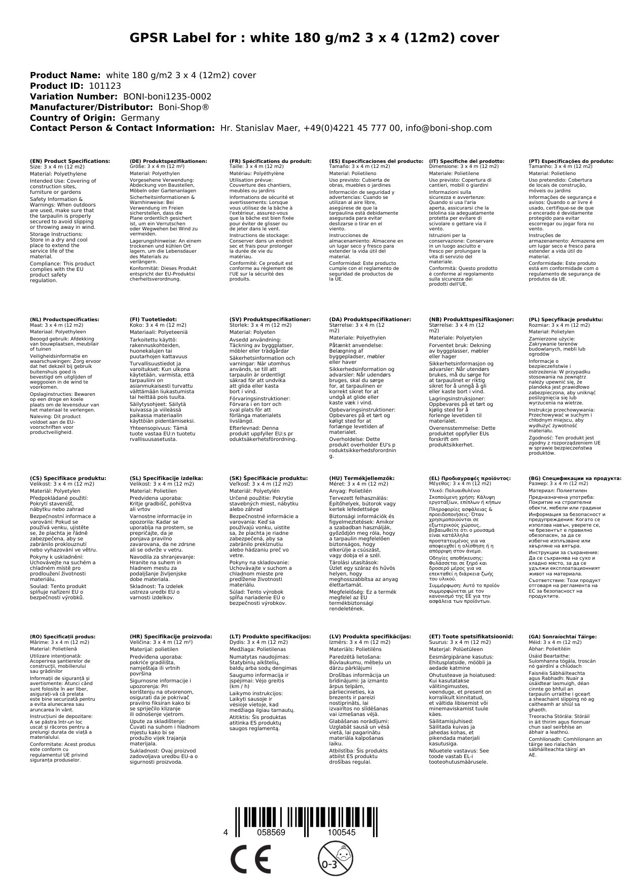 Cuireann ár tarpaulin cosanta cosaint iontaofa ar fáil do do chuid earraí luachmhara. Le meáchan 180 g/m² agus dearadh uiscedhíonach, seasann sé fiú i gcoinne na ndálaí aimsire is déine. Mar gheall ar a chobhsú UV, tá sé thar a bheith buan. Cosnaíonn sé do throscán gairdín go hoptamach ó thaise, salachar agus ghathanna na gréine. Leis an tarpaulin seo, tá tú ag infheistiú i gcaomhnú fadtéarmach do mhaoin.