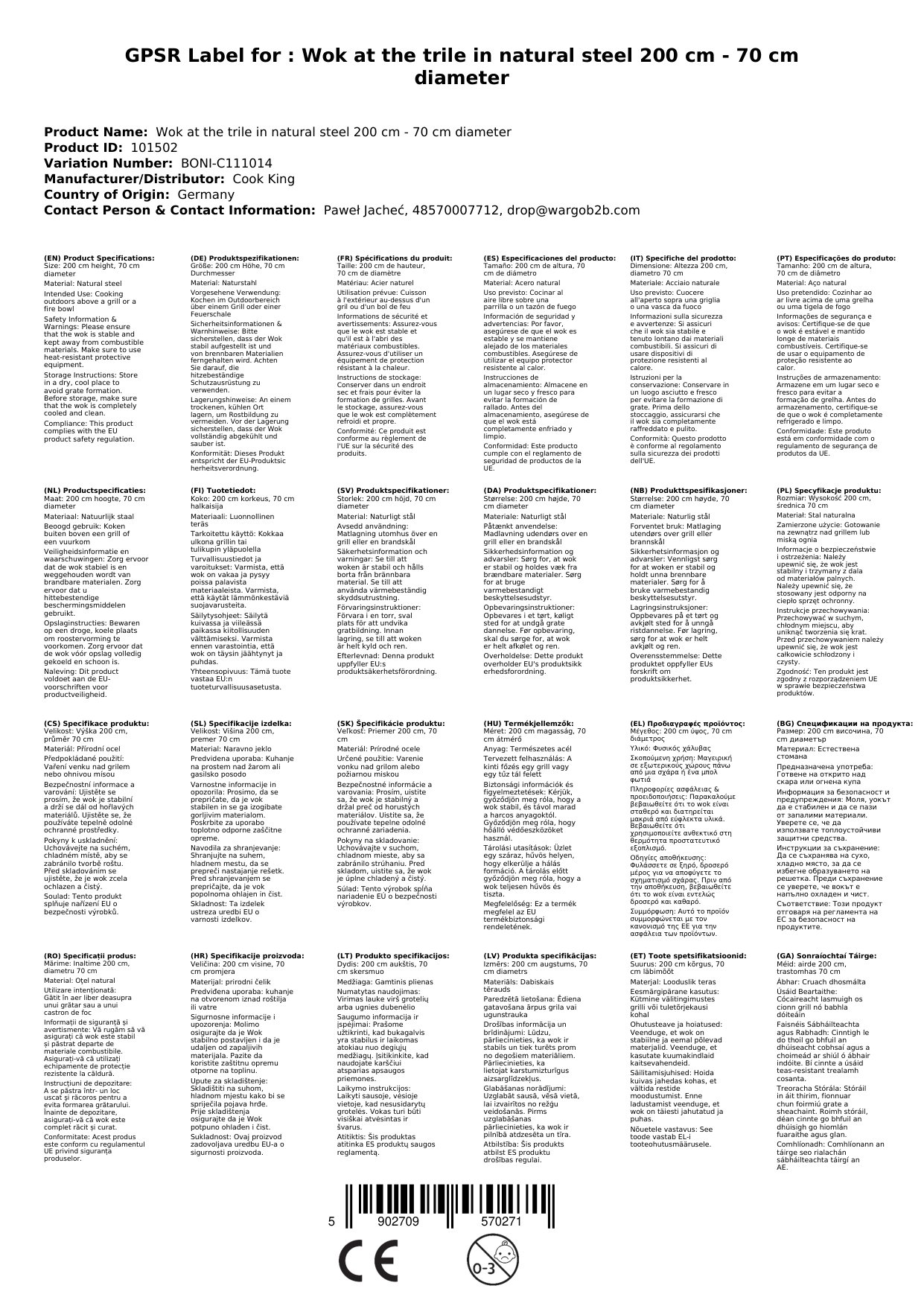 - Wok Cruach Ardcháilíochta: Tá an wok, le trastomhas 70 cm, déanta as cruach dubh agus cuireann sé go leor spáis ar fáil duit chun codanna móra a ullmhú. Tá an cruach sábháilte ó thaobh bia de agus ráthaíonn sé taitneamh neamhurchóideach duit.