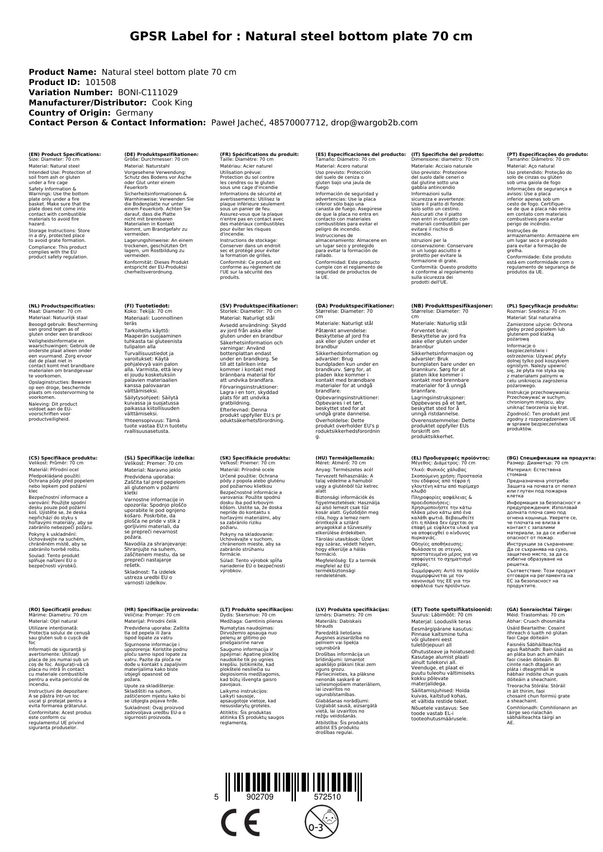 - Oiriúnach do Dhóiteáin Chnámh 70 cm ar Trastomhas: Tá an pláta bonn deartha go sonrach le haghaidh dóiteáin cnámh le trastomhas 70 cm agus soláthraíonn sé méid is fearr do na samhlacha seo.