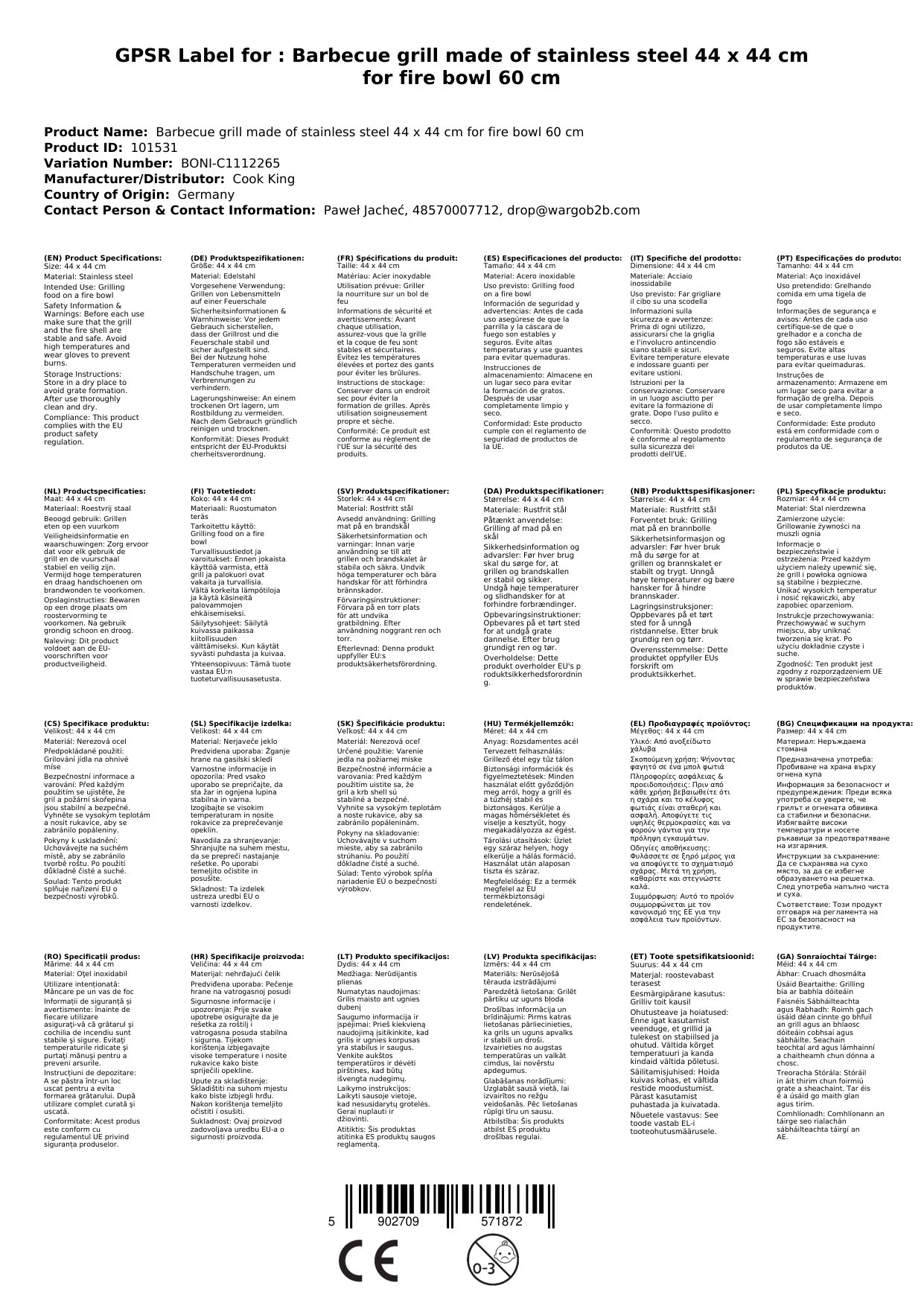 - Foirfe do Bhabhlaí Dóiteáin: Tá an gríl deartha go speisialta le haghaidh babhlaí dóiteáin le trastomhas 60 cm. Luíonn sé go hidéalach agus cinntíonn sé pléisiúr sábháilte grilling.