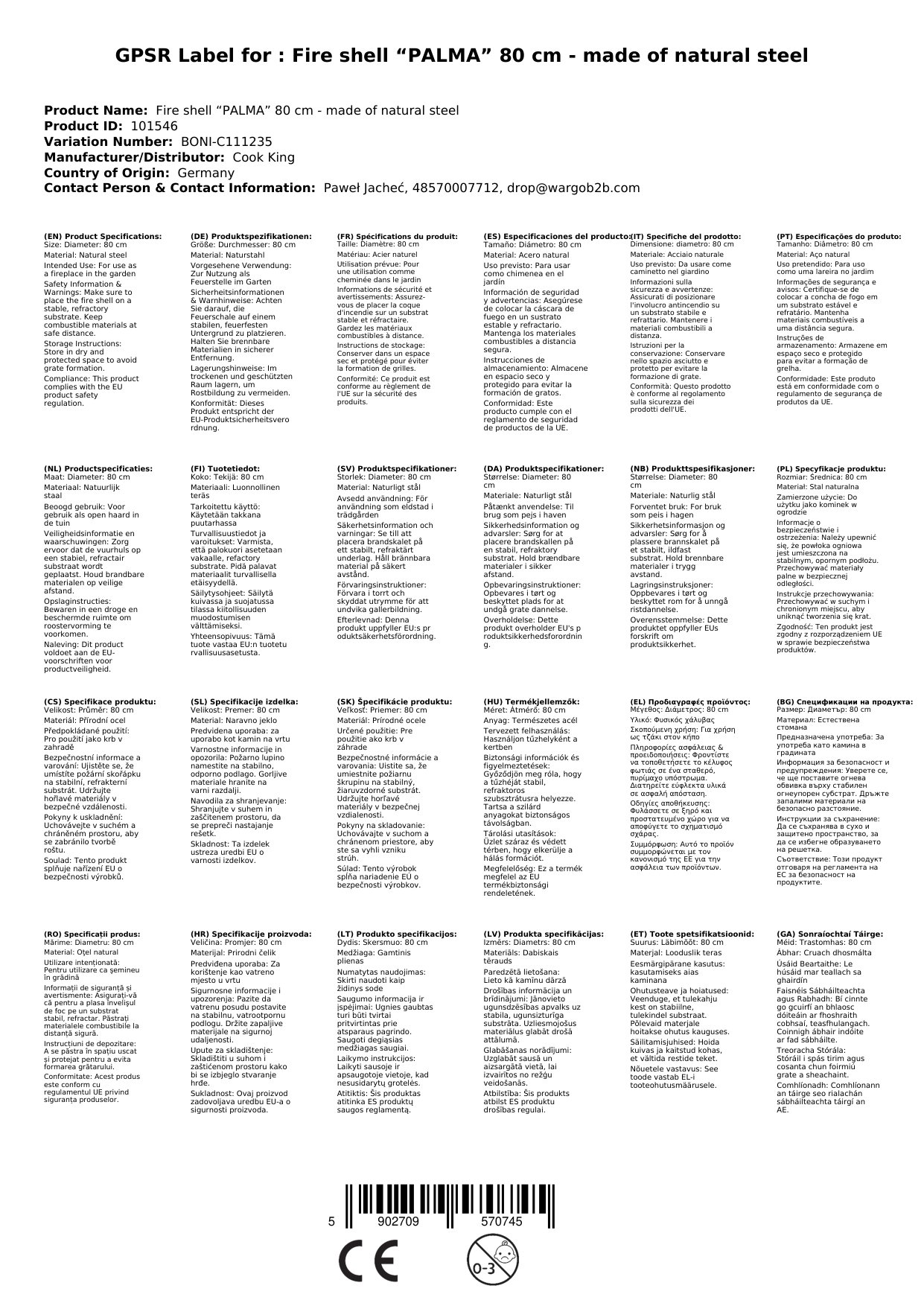 Cuir ceist chun níos mó a fhoghlaim faoin táirgeFaigh Blaiseadh den Teas le Tobar Dóiteáin „PALMA“