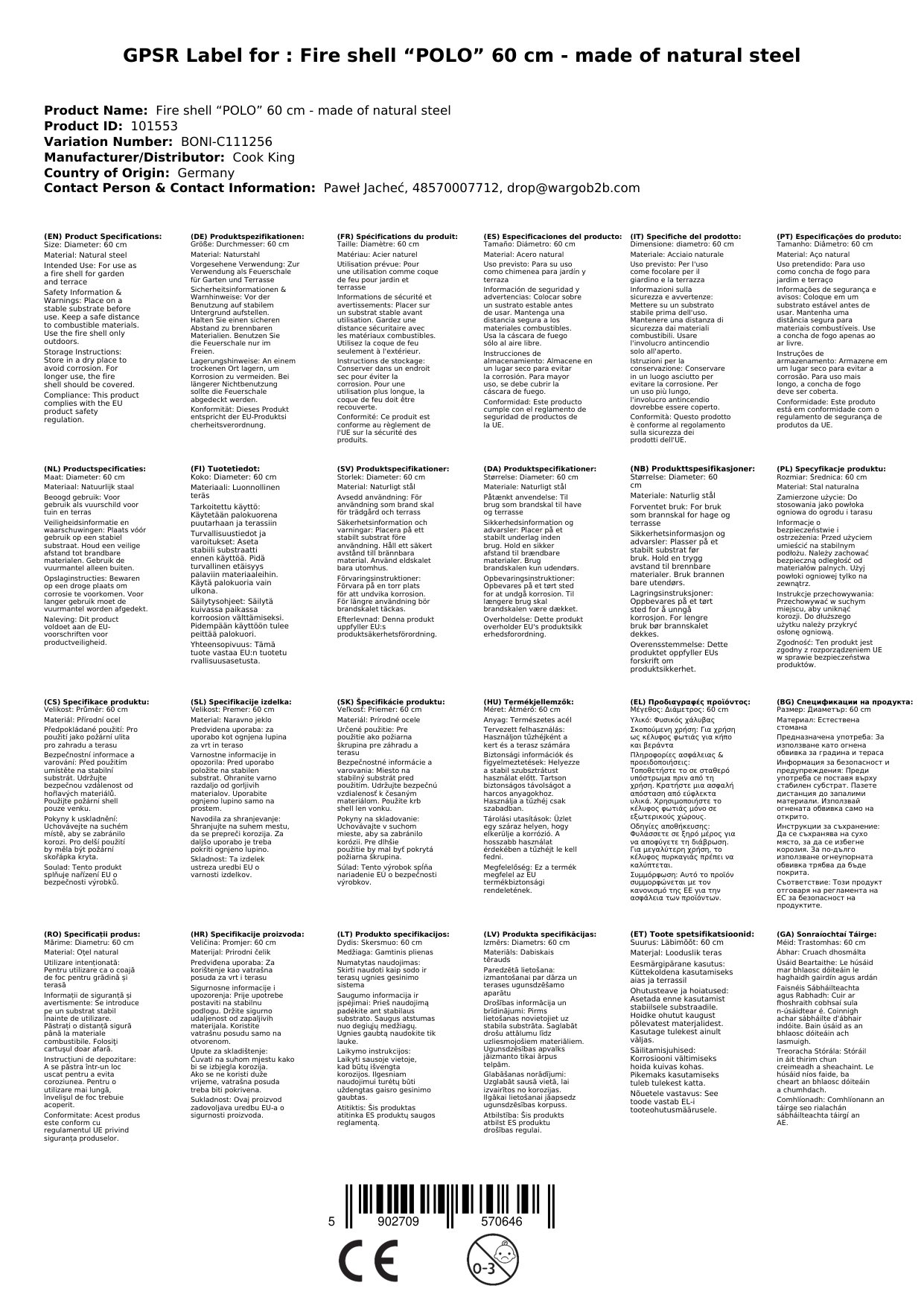 Cuir ceist chun níos mó a fhoghlaim faoin táirgeTobar Dóiteáin “POLO” 60 cm déanta as Cruach Nádúrtha le haghaidh Uaireanta Compordach
