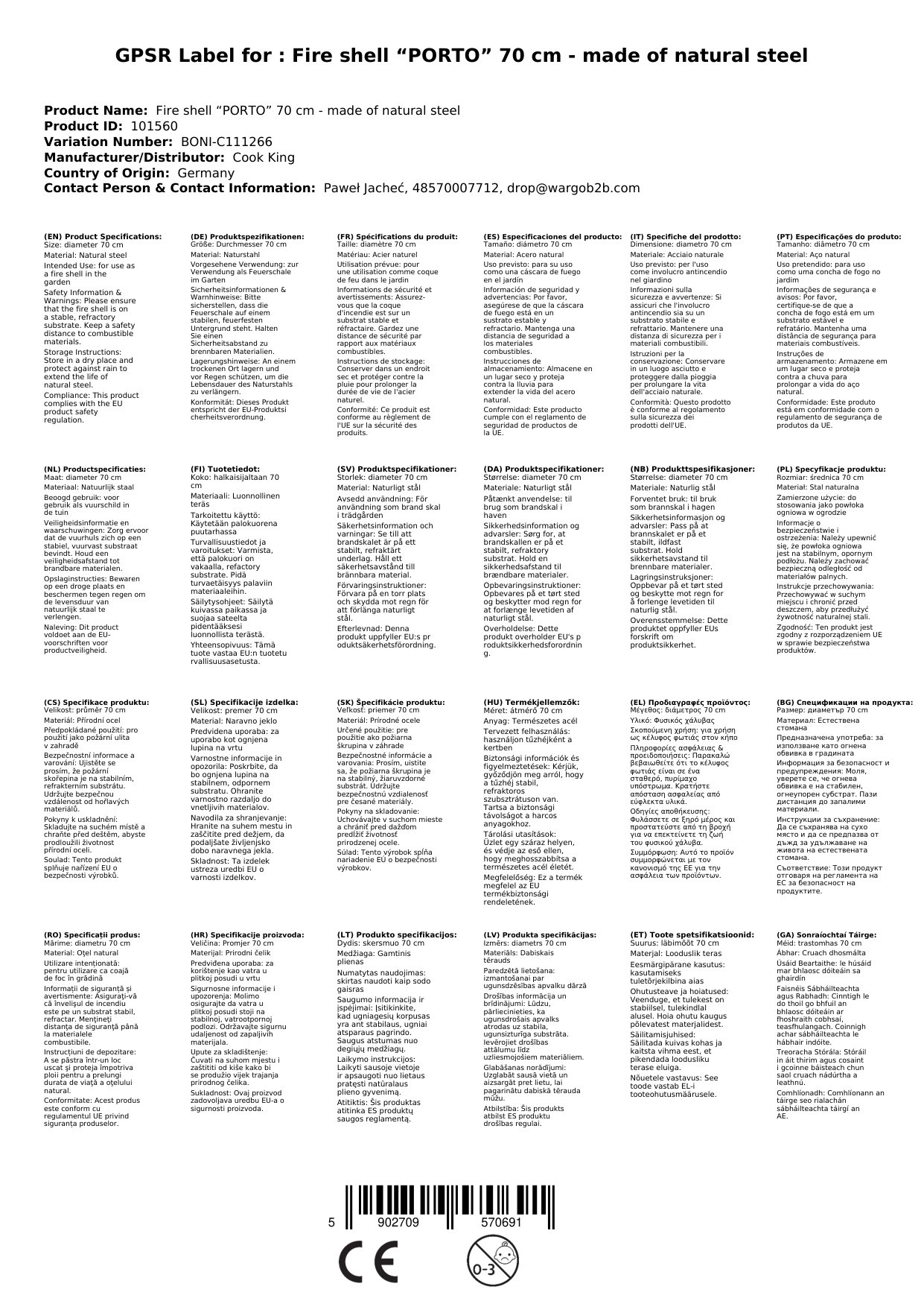 Cuir ceist chun níos mó a fhoghlaim faoin táirgeTobar Dóiteáin Porto 70cm: Teas agus Atmaisféar Do Do Ghairdín