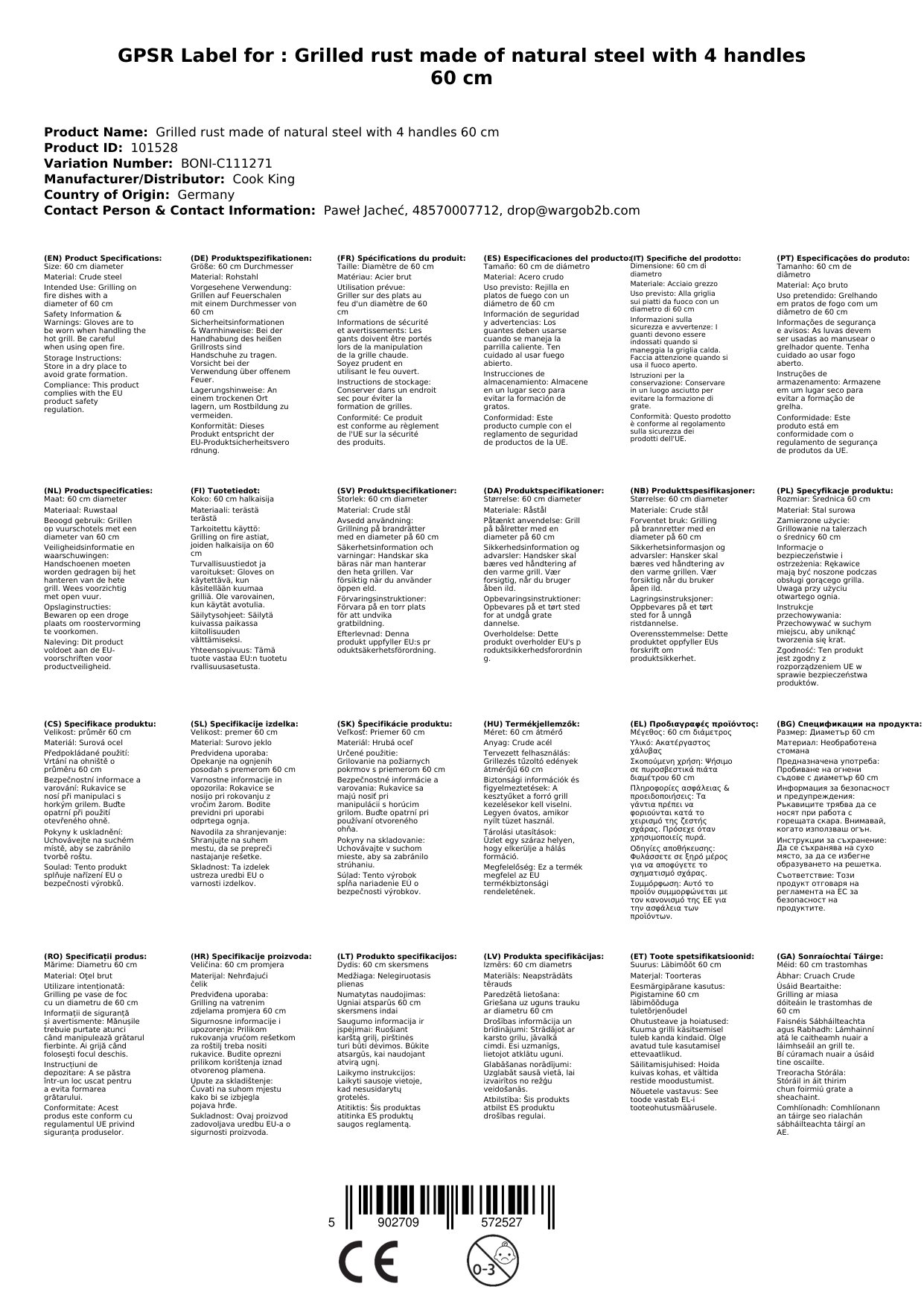 Tá an Gríl Cruach seo deartha go speisialta le haghaidh babhlaí tine le trastomhas 60 cm. Tabhair faoi deara é seo agus tú á úsáid.