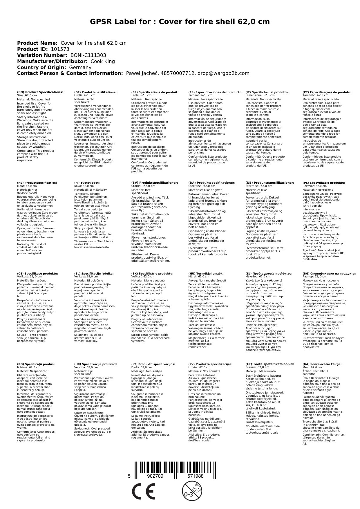 Tá an clúdach deartha go sonrach do phoill dóiteáin le trastomhas 62cm. Seiceáil trastomhas do phoill dóiteáin sula gceannaíonn tú é.