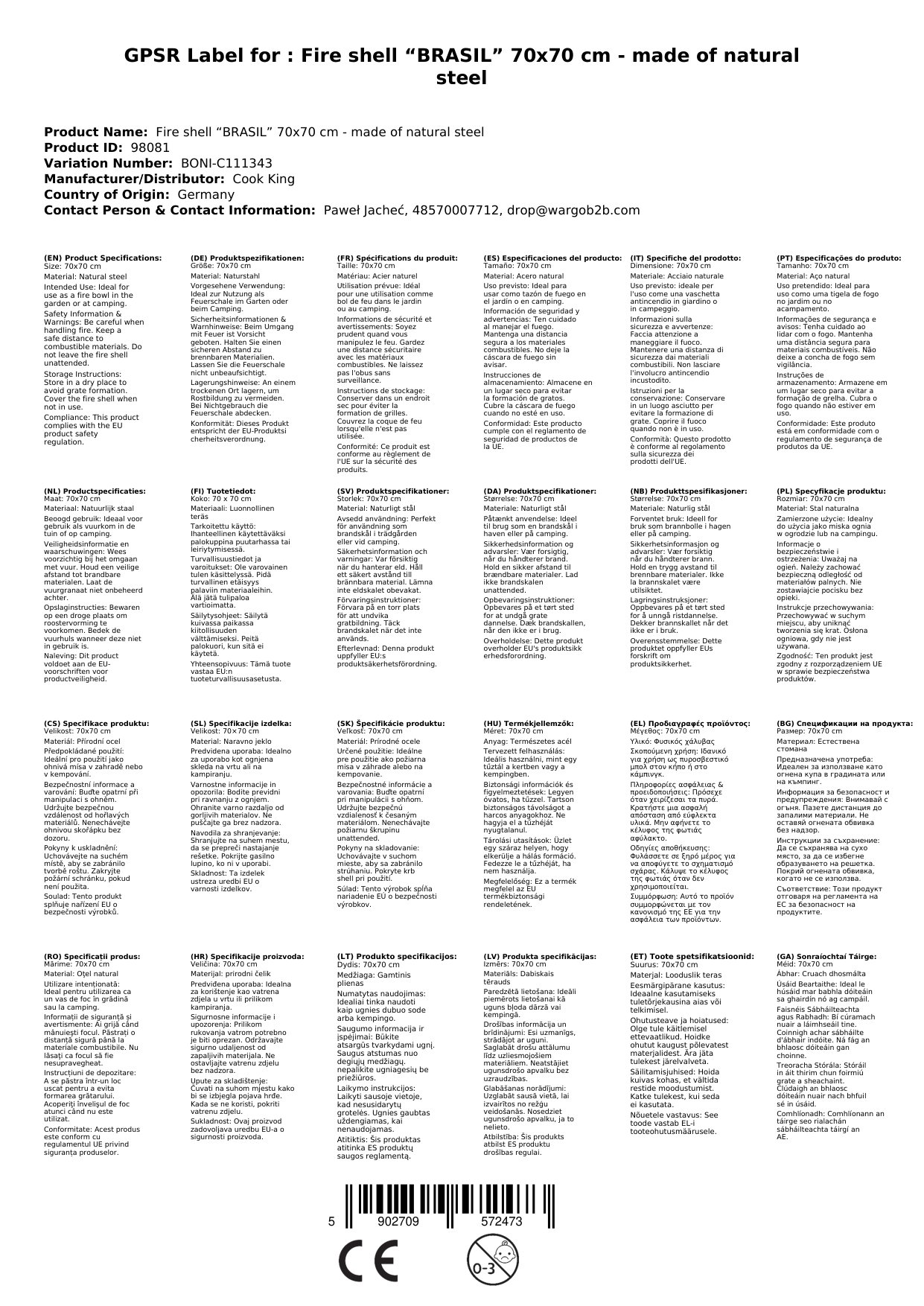 Ní hamháin gur aird a tharraingt amhairc é an Tobar Dóiteáin BRASIL, ach cuireann sé ina luí freisin lena ábhair láidre agus a cheardaíocht ardchaighdeáin. Le méid 70x70 cm, cuireann sé go leor spáis ar fáil le haghaidh tine chnámh cluthar. Cinntíonn an cruach nádúrtha thart ar 2mm tiubh saol seirbhíse fada agus cobhsaíocht. A bhuíochas leis an táirgeadh lámhdhéanta, gheobhaidh tú píosa uathúil d’ardchaighdeán. Is féidir leat a bheith cinnte go gcoinneoidh an Tobar Dóiteáin seo a charm agus a fheidhmiúlacht fiú le húsáid go minic.