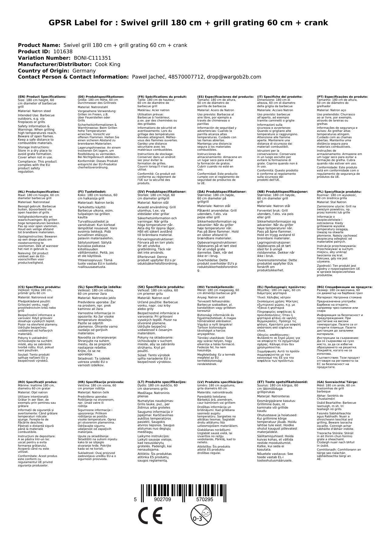 Cuireann ár trealamh gríll swing ar do chumas cócaireacht agus gríleáil amuigh faoin aer. Le trí chois láidir, fráma cruach brataithe le púdar, agus gríl rósta lámhdhéanta, faigheann tú trealamh iomlán le haghaidh tráthnóntaí gríll nach ndéanfar dearmad orthu. Leis an kurbel chun an airde a choigeartú go héasca, tá smacht iomlán agat ar theocht an ghríll. Tá sé tábhachtach duit: Faigheann tú trealamh gríll ardchaighdeáin, buan, agus éasca le húsáid.