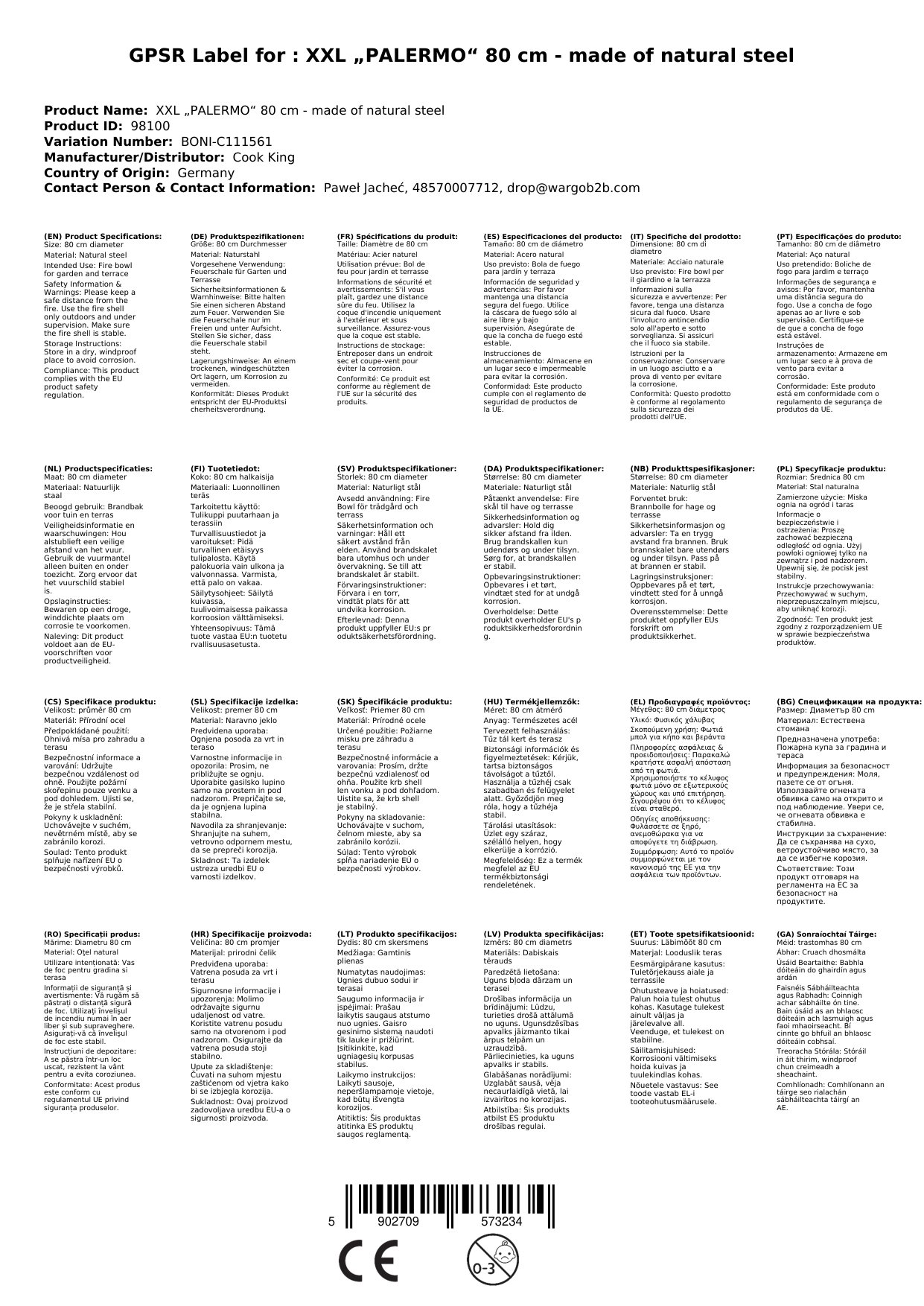 Cuireann ár bpoll tine réiteach iontach ar fáil dóibh siúd ar mian leo sábháilteacht agus stíl a chur le chéile. Le trastomhas 80 cm, soláthraíonn sé go leor spáis le haghaidh tine chnámh chompordach. Mar gheall ar a mhonarú as cruach nádúrtha láidir, tá sé thar a bheith buan agus frithsheasmhach. Faigheann tú tine chnámh shábháilte agus fhadtéarmach a thabharfaidh blianta de phléisiúr duit.