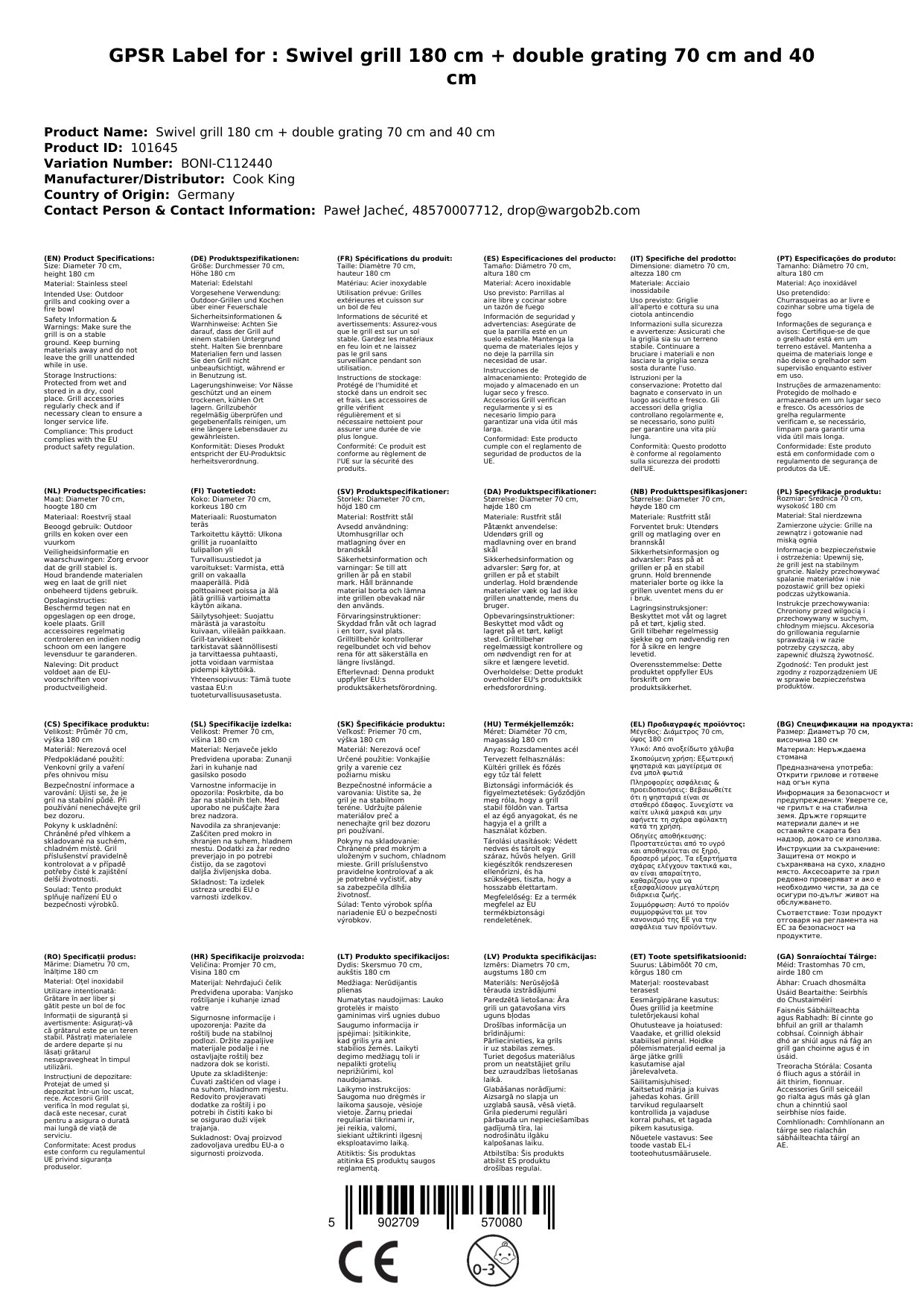Cuireann ár ngríl swing ar chumas tú taitneamh a bhaint as trealamh gríl idéalach sa spás lasmuigh. Le airde 180 cm agus rós dúbailte 70 cm + 40 cm, tá sé foirfe chun bia a ullmhú do go leor aíonna. Cosnaíonn an tríchos brataithe le púdar i gcoinne damáiste meicniúil agus is furasta é a chur le chéile, a dhíchóimeáil, a iompar agus a stóráil. Is féidir leat brath ar dhearadh láidir, buan a thabharfaidh blianta fada sult duit.