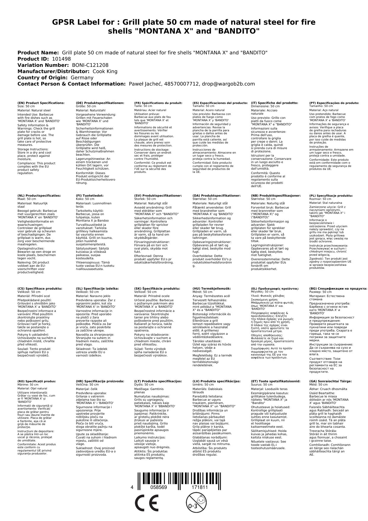 Cuireann ár pláta grill déanta as cruach nádúrtha réiteach láidir agus buan ar fáil do do riachtanais grilling. Le trastomhas 50 cm agus tiús 1 cm, stórálann an pláta teas go barrmhaith agus cinntíonn sé go ndéantar do bhia a chócaráil go cothrom. Ráthaíonn an meáchan thart ar 7.8 kg cobhsaíocht agus cáilíocht ard próiseála, a chinntíonn an táirgeadh san Eoraip. Cén fáth go bhfuil sé seo tábhachtach duit: Faigheann tú pláta grill atá ní amháin buan, ach freisin a sheachadann torthaí grilling is fearr a bhuíochas dá stóráil teasa ard.