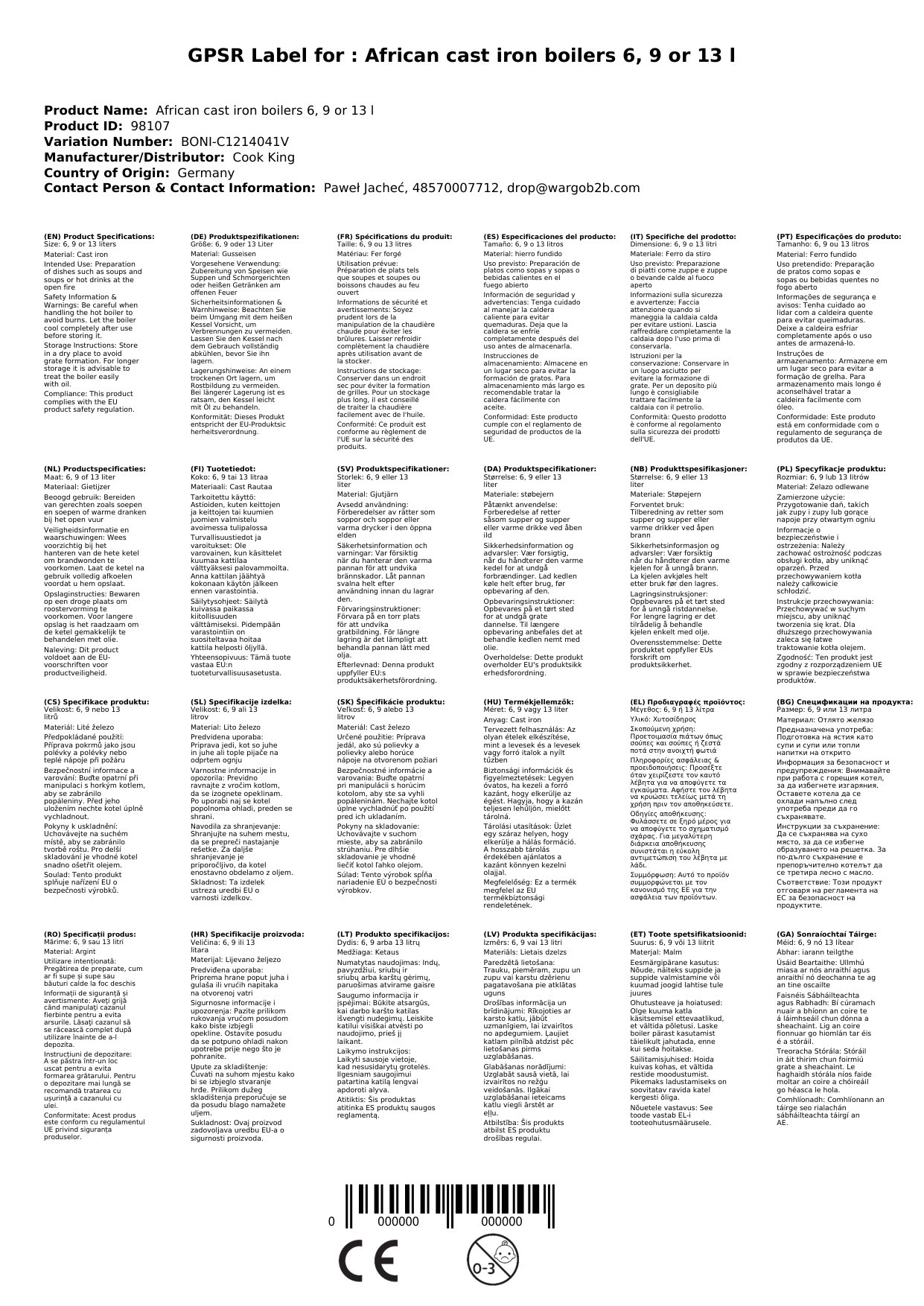 Ní hamháin gléas cócaireachta é an coire iarainn teilgthe seo, ach píosa ceardaíochta a chomhcheanglaíonn traidisiún agus feidhmiúlacht. Déanta as iarann teilgthe ardcháilíochta, cuireann sé dáileadh agus coinneáil teasa den scoth ar fáil, rud a fhágann go bhfuil sé idéalach le haghaidh miasa braised agus anraithí fada buan. Ar fáil i dtrí mhéid éagsúla (6, 9, agus 13 lítear), gheobhaidh tú an coire ceart do do riachtanais. Cén fáth go bhfuil sé seo tábhachtach duit: Cibé an bhfuil tú ag cócaireacht don teaghlach nó ag iarraidh béile mór tine chnámh a ullmhú, cuireann an coire seo an tsolúbthacht agus an iontaofacht ar fáil duit a theastaíonn uait.
