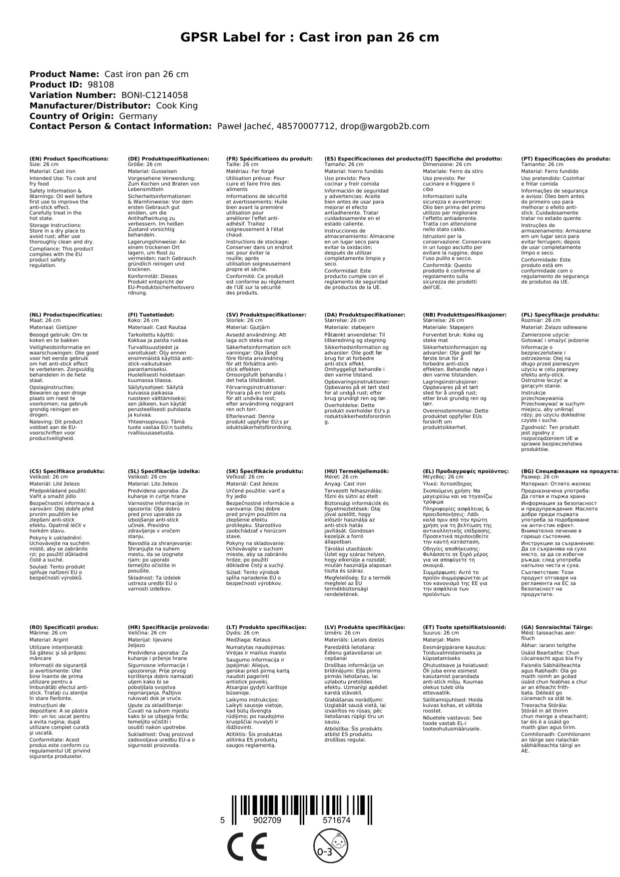 Faigh amach an uile iarainn theilgthe láidir ilghnéitheach le trastomhas 26 cm. Oiriúnach d'fhearais, d'oighinn agus do ghriollacha, stórálann sé teas go barrmhaith agus cuireann sé ar chumas cócaireachta coigilteach fuinnimh. Bain tairbhe as an sciath neamh-bata nádúrtha agus as an nglanadh éasca. Gnéithe Táirge | Buntáistí | Feidhm | Sonraíochtaí Teicniúla | CCanna | Cén fáth a cheannach uainn? | Léirmheasanna na gCustaiméirí