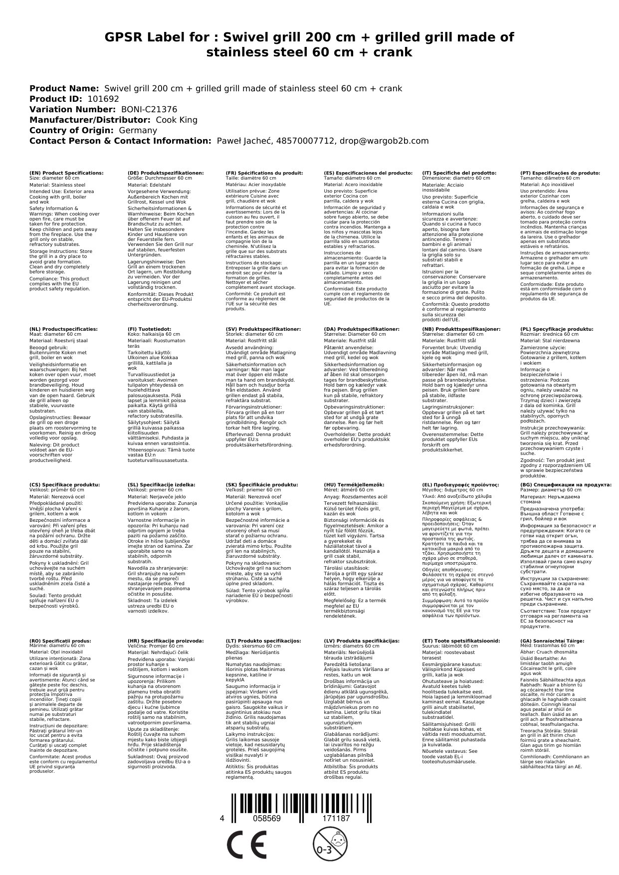 | Trastomhas Gríl | 60 cm |