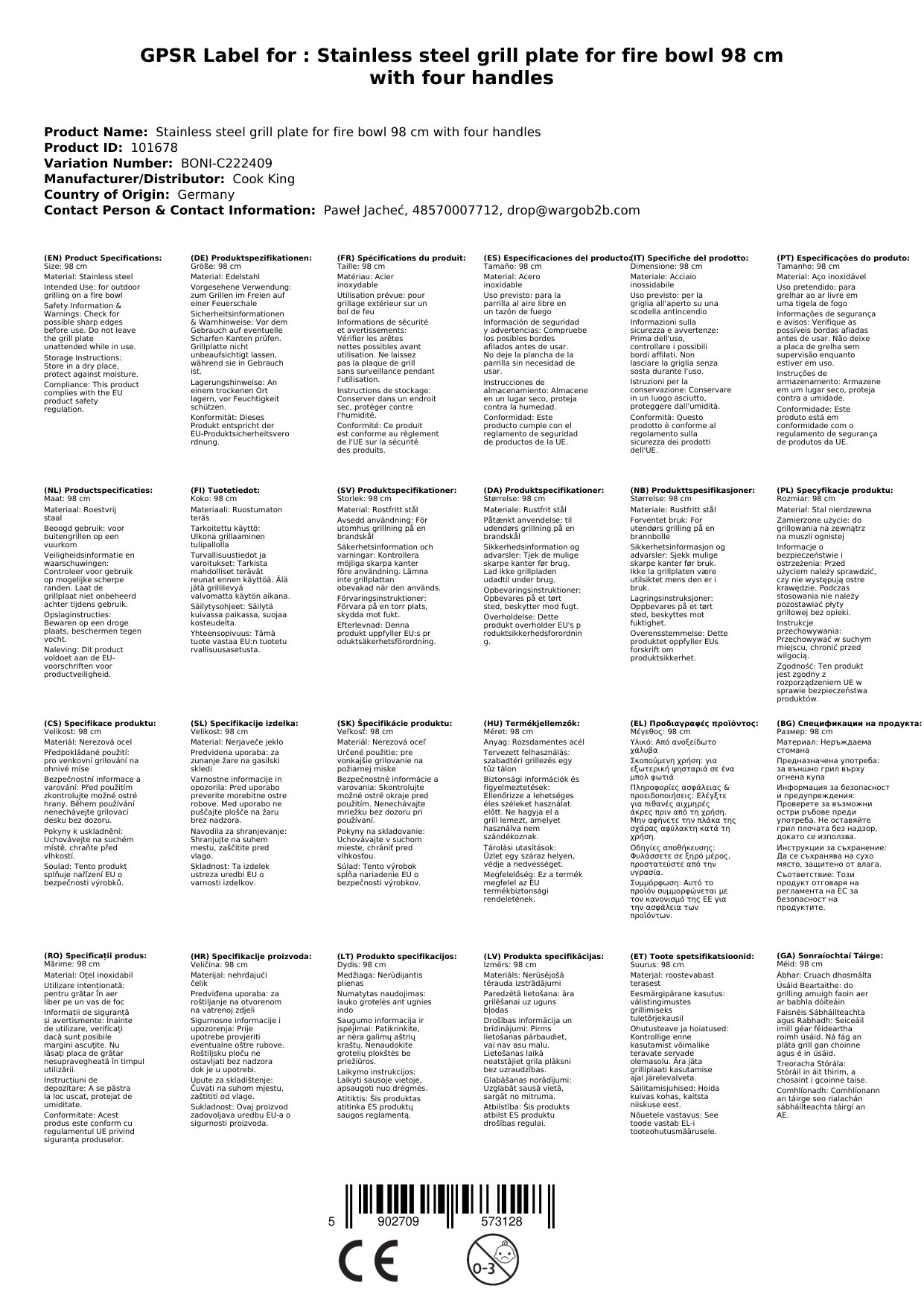 Ar mhaith leat do chócaireacht lasmuigh a ardú? Fágfaimid an pláta grill cruach dhosmálta seo do do bhabhla tine foirfe duit. Le trastomhas mór 98cm, tá go leor spáis agat chun beagnach aon chineál bia a chócaráil. Tá ceithre láimhseáil aige freisin chun é a dhéanamh sábháilte agus furasta a úsáid.Sonraíochtaí Tábhachtacha, Sonraíochtaí Teicniúla, Gnéithe Táirge agus Buntáistí, Buntáistí, Conas a Úsáid, Ceisteanna Coitianta (FAQ), agus Cén Fáth Ceannaigh Uainn?