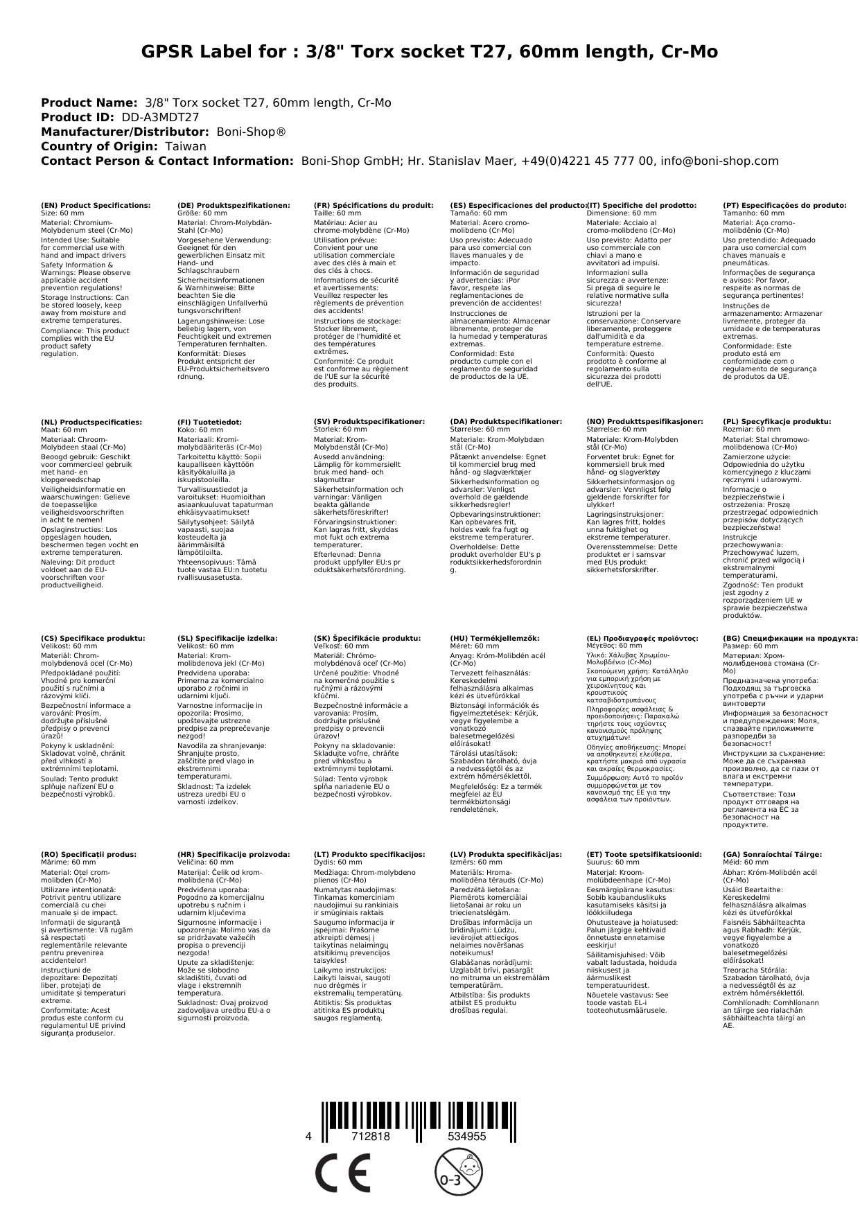 Nuair a cheannaíonn tú an Soicéad Torx 3/8" T27 ó Boni-Shop, faigheann tú níos mó ná uirlis amháin. Faigheann tú: