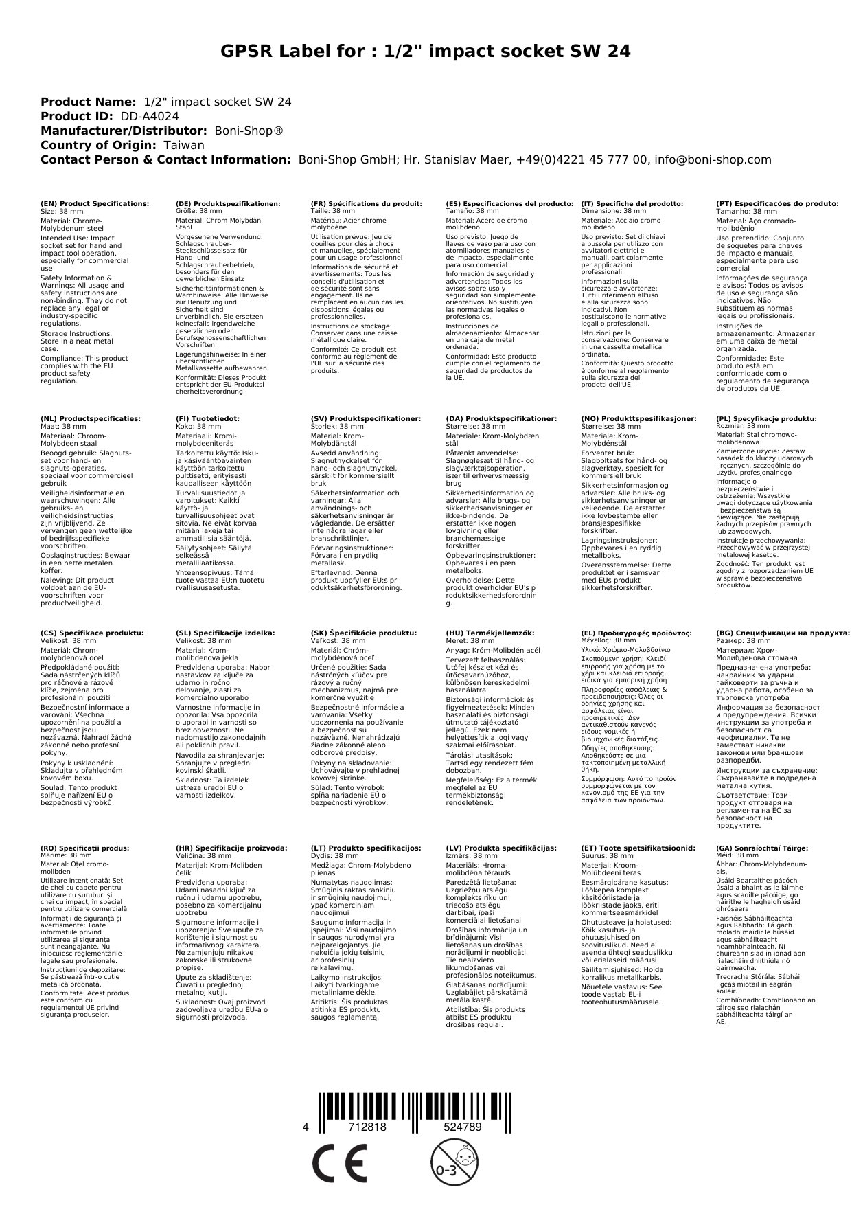 Tá an cnó tionchair 1/2 orlach seo déanta as cruach cróimiam moluibdín ardchaighdeáin, rud a thugann cruas agus friotaíocht eisceachtúil dó. Le méid 24 mm agus fad 38 mm, tá sé oiriúnach d’obair scriúcháin bheacht. A bhuíochas leis an dearadh 6-thaobh, ráthaítear aistriú cumhachta is fearr. Cén fáth go bhfuil sé seo tábhachtach duit: Faigheann tú uirlis a oibríonn go hiontaofa fiú faoi ualach ard agus a thabharfaidh blianta fada sásaimh duit.