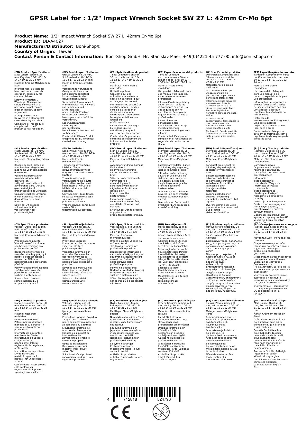Ríomhphost na Duine Freagrach don AE: info@boni-shop.com