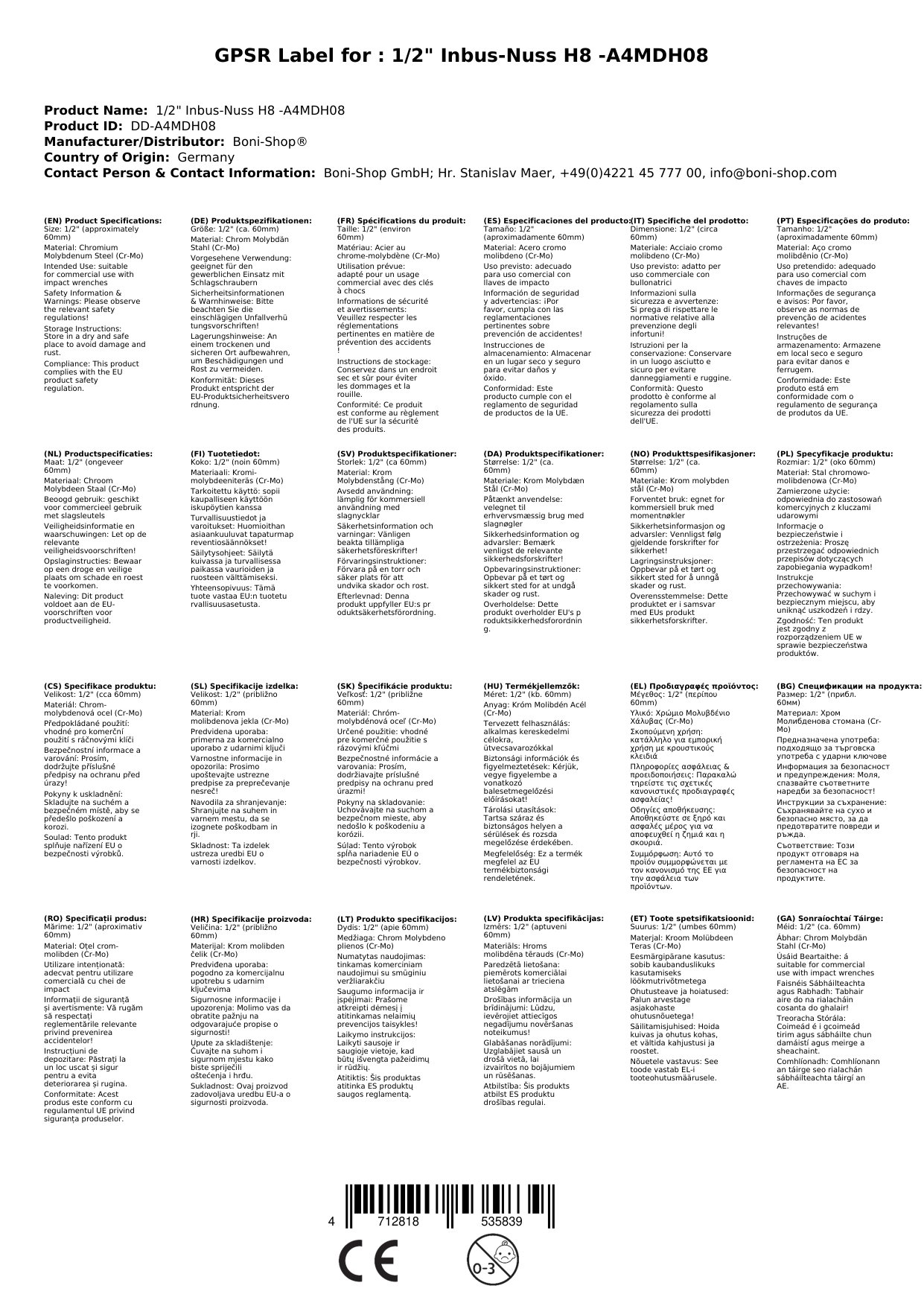 Ríomhphost na Duine Freagrach don AE: info@boni-shop.com