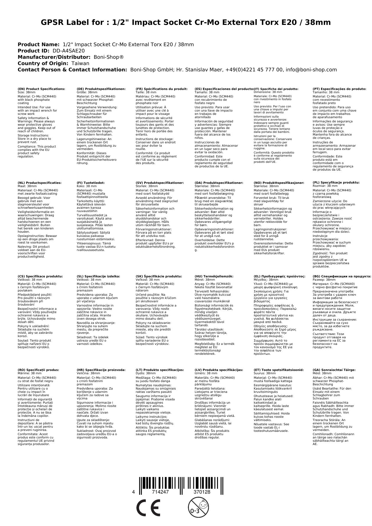 Cuireann ár gCnó heicsigineach 1/2 orlach réiteach iontaofa agus láidir ar fáil le haghaidh obair scriú casta. Déanta as cruach cróimiam-molaibdín (Cr-Mo) ardchaighdeáin agus le sciath fosfáit dhubh, cuireann sé marthanacht eisceachtúil ar fáil. Cinntíonn an glacadh seachtrach heicsigineach E20 beacht aistriú fórsa is fearr. Faigheann tú uirlis fhadtéarmach a oibríonn go hiontaofa fiú faoi na coinníollacha is deacra.