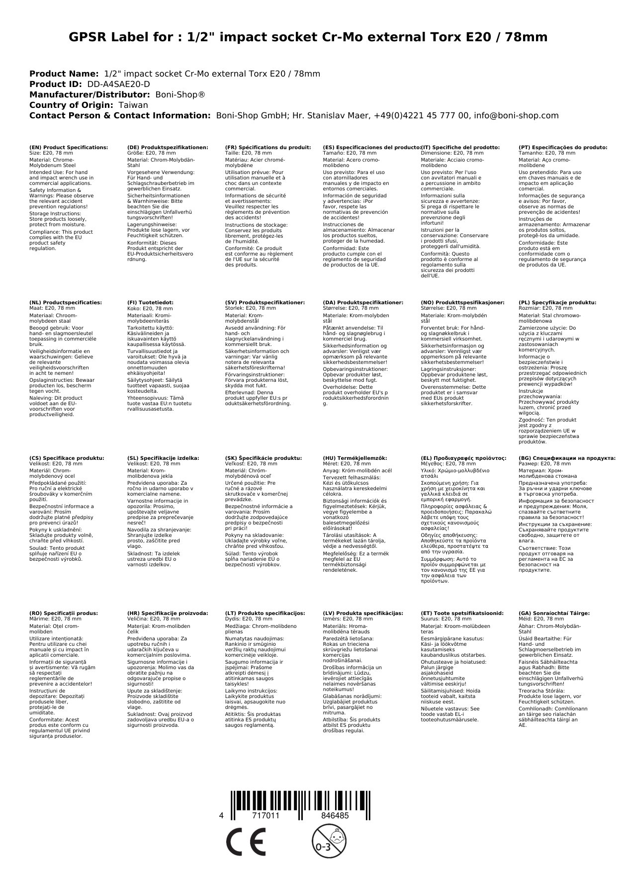 | SKU | BONI-DD-A4SAE20-D |