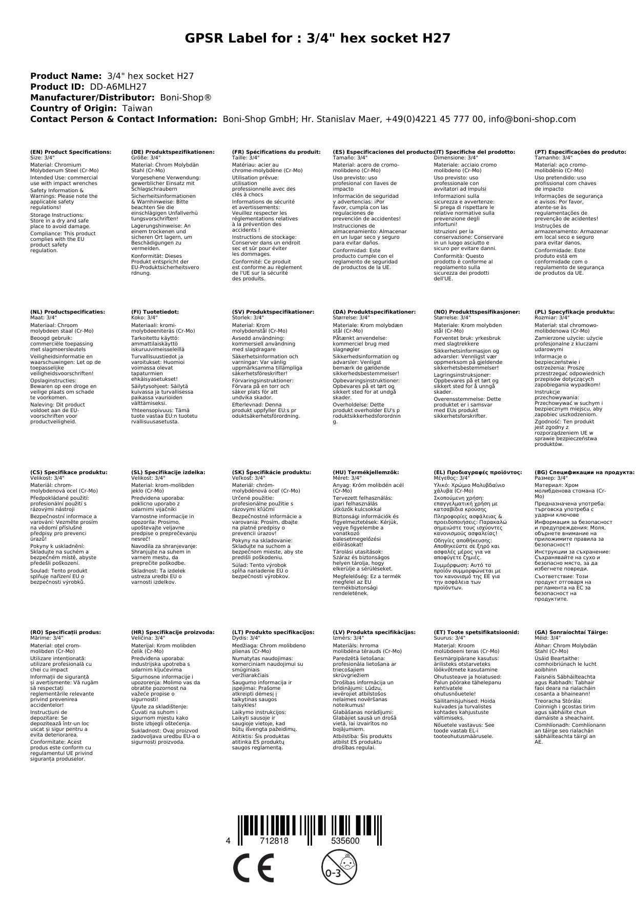 Cuireann ár gcnó eochair heicsigineach feidhmíocht iontaofa ar fáil duit do cheardlann. Le soicéad 3/4 orlach agus méid H27, tá sé idéalach d'úsáid ghairmiúil. Cinntíonn an t-ábhar láidir cruach cróimiam-moluibdín (Cr-Mo) saolré fada agus cumas ard ualaigh. Cén fáth go bhfuil sé seo tábhachtach duit: Faigheann tú uirlis ar féidir leat brath uirthi fiú le tascanna éilitheacha.