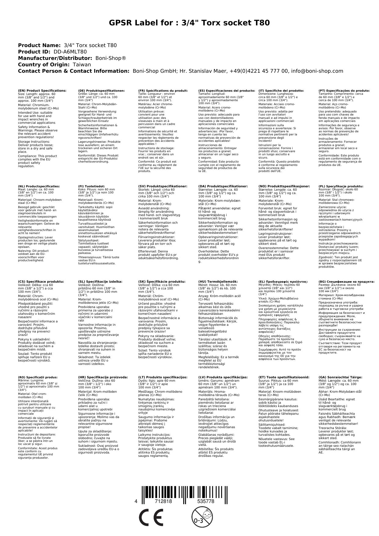 Ríomhphost na Duine Freagrach don AE: info@boni-shop.com
