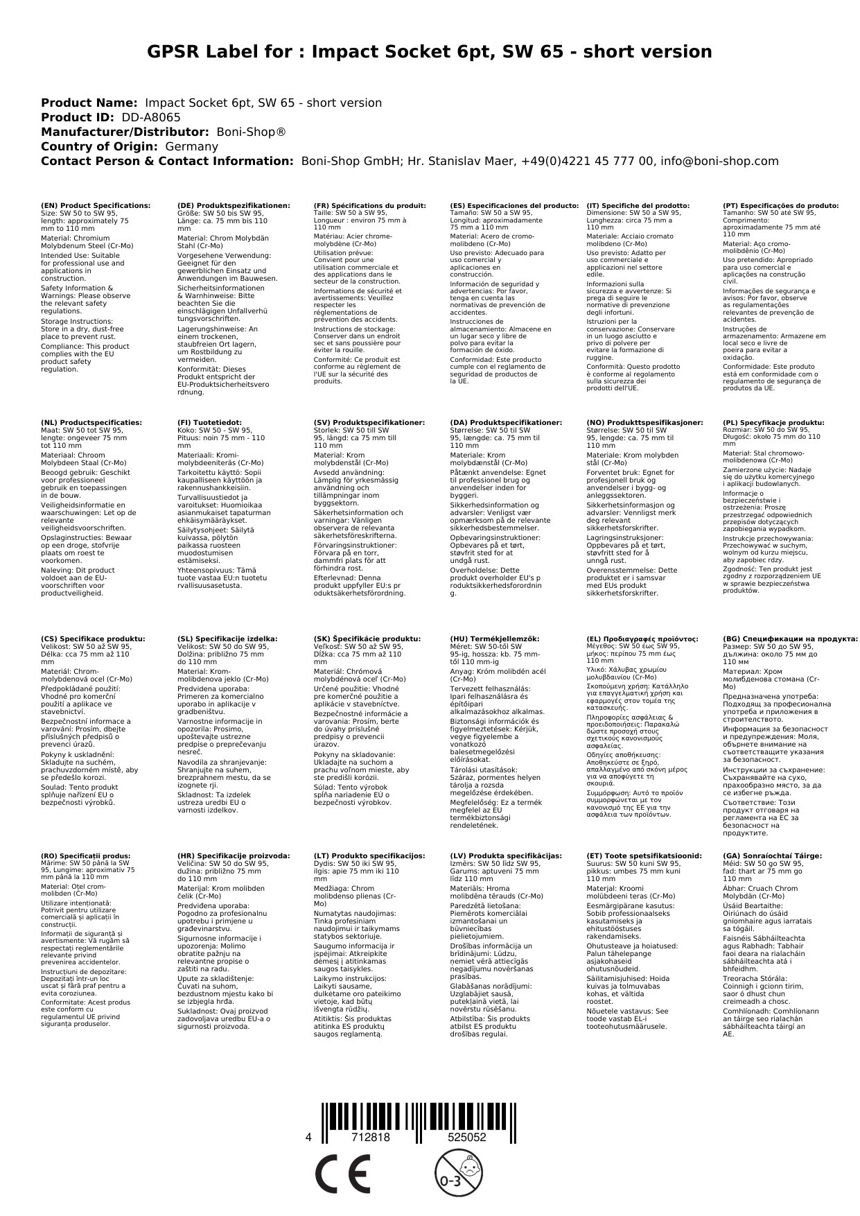 Cuir ceist chun níos mó a fhoghlaim faoin táirgeCnó tionchair 1 orlach, SW 65 gearr, 6pt, Cr-Mo cruach