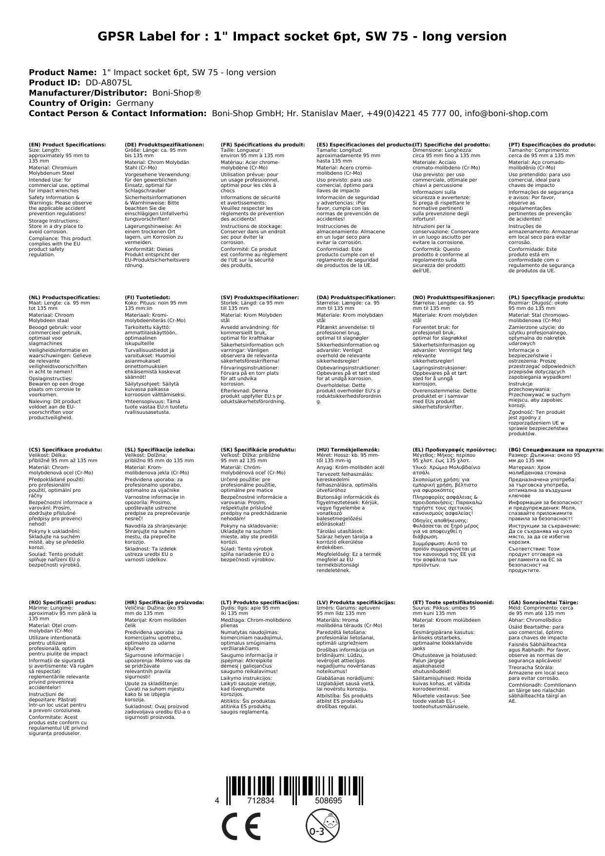 | SKU | BONI-DD-A8075L |