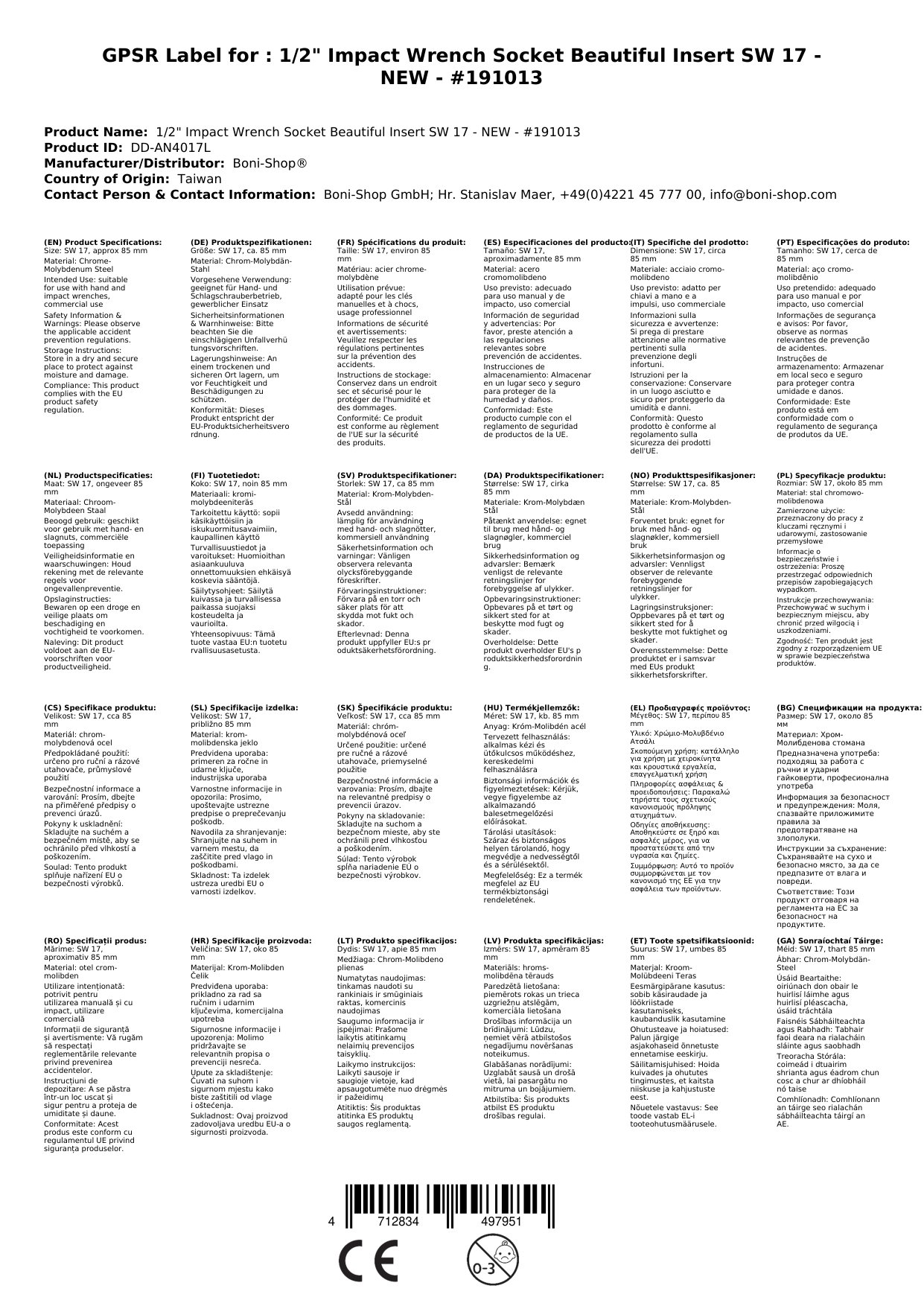 Faigh amach an Cnó Soicéad Tionchair 1/2 orlach ardcháilíochta, atá deartha go speisialta le haghaidh úsáid dhian. Cuireann an soicéad seo, atá ar chaighdeán tionsclaíoch, cruinneas agus iontaofacht ar fáil duit i ngach feidhmchlár. Leis an dearadh láidir agus an ionsáigh chosanta SW 17 a luíonn go foirfe, tá tú réidh do gach dúshlán. Bain leas as marthanacht agus éifeachtúlacht i do chuid oibre scriú.