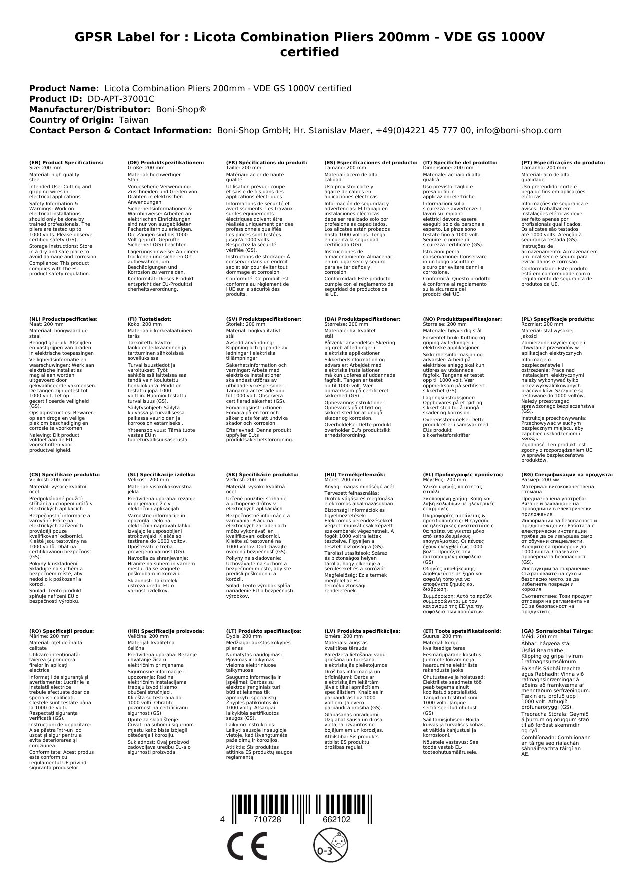 Deartha le haghaidh sábháilteachta agus éifeachtúlachta, tá an Piobar Teaglama Licota seo foirfe le haghaidh raon leathan tascanna leictreacha. Le tástáil VDE GS 1000V, is féidir leat a bheith cinnte go bhfuil tú cosanta agus tú ag obair. Tá an méid 200mm oiriúnach le haghaidh láimhseáil chruinn. Tá a cháilíocht agus a deimhniú riachtanach duit toisc go ndéanann sé obair shábháilte agus éifeachtach.
