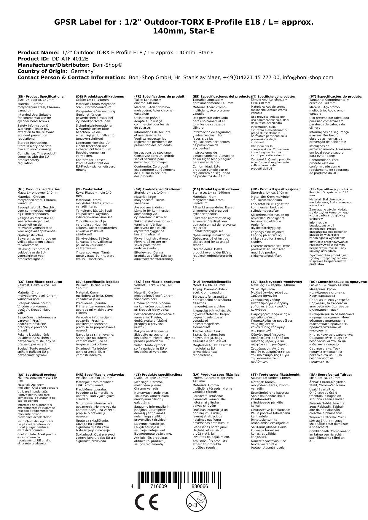 Torx Seachtrach E18, Eochair Soicéad Próifíl E, Soicéad 1/2 Orlach