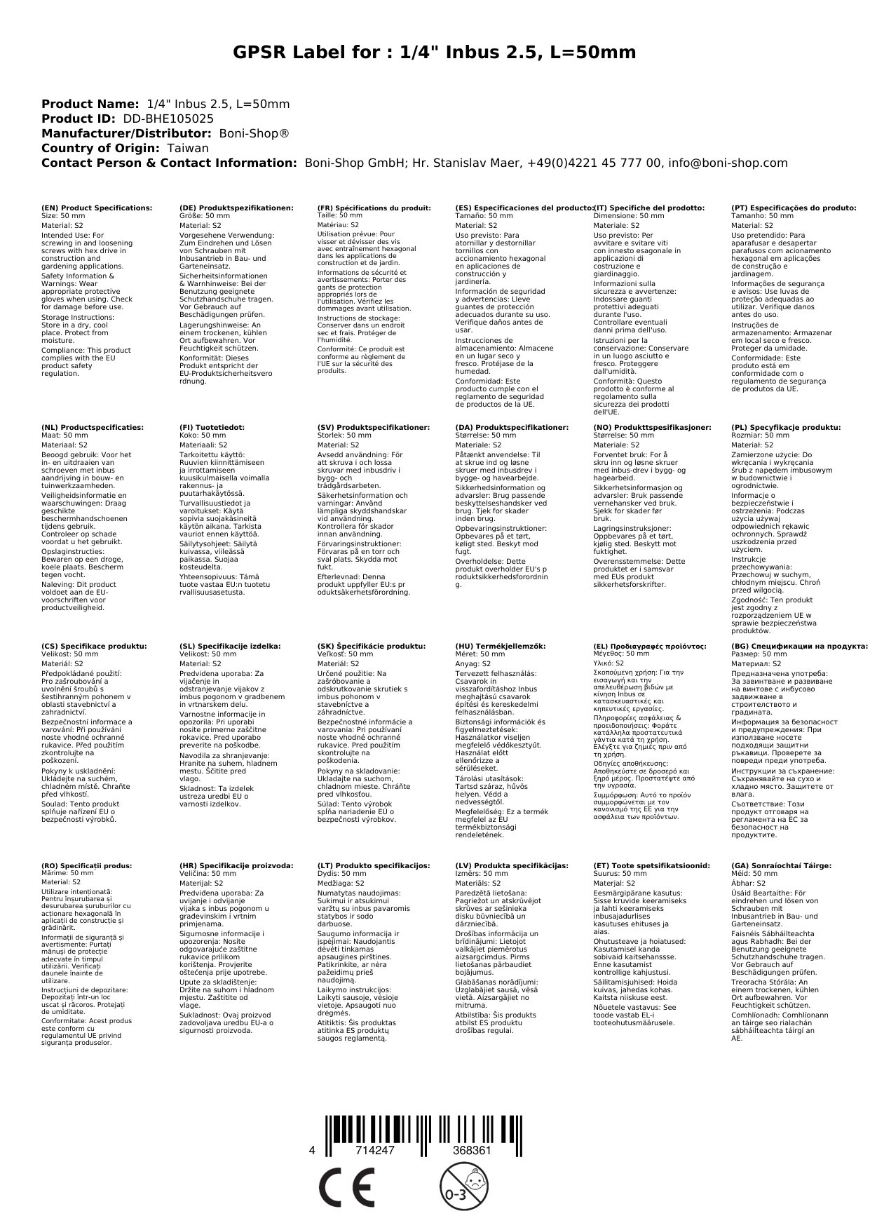 Tá an eochair Allen ardchaighdeáin seo le méid 2.5 mm agus fad 50 mm foirfe do chuid oibre cóimeála go léir. Tugann sé smacht beacht duit agus feidhmíocht iontaofa i ngach feidhmchlár. Leis an tógáil láidir atá aige, tá sé buan agus frithsheasmhach.