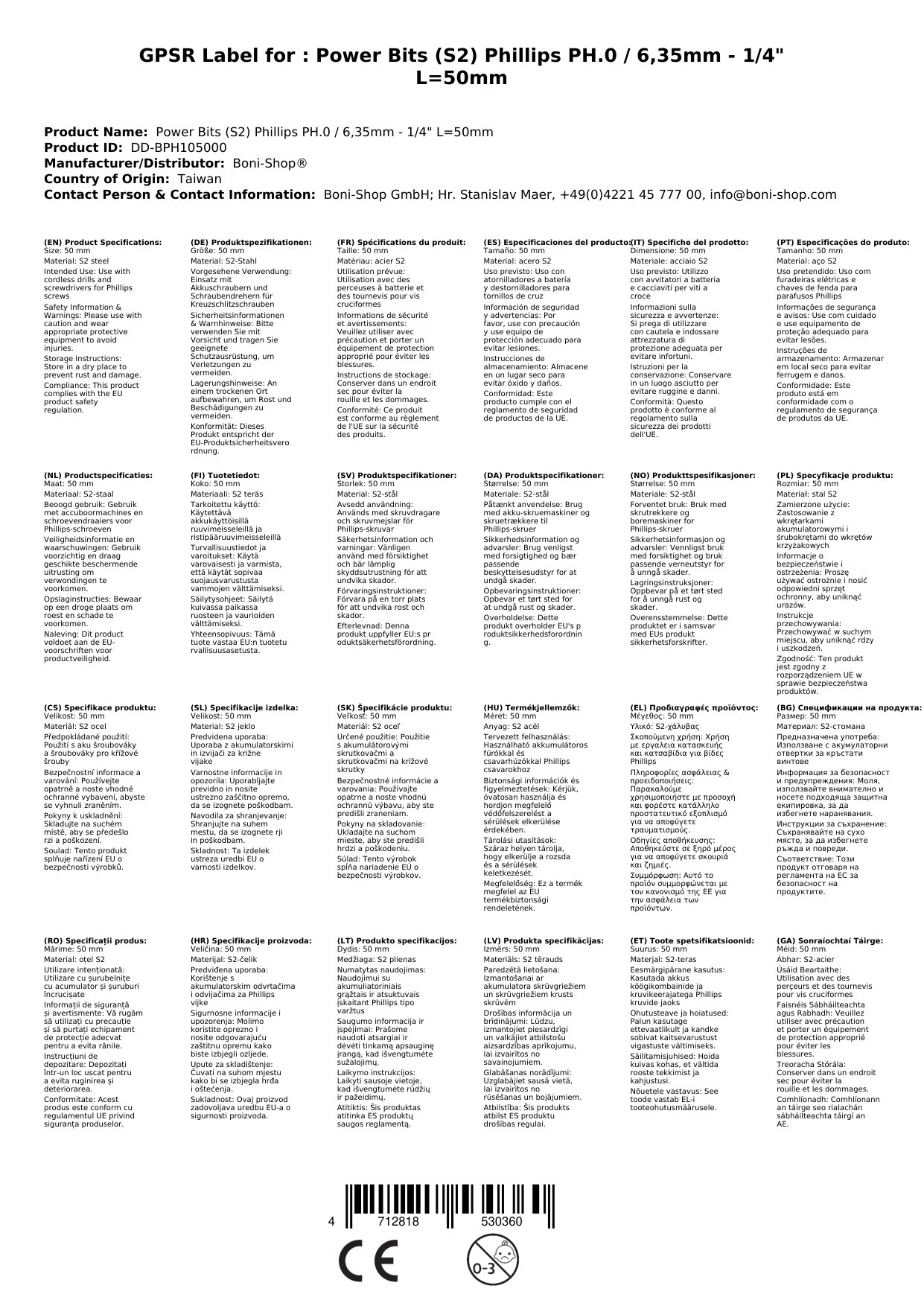 Cuireann ár ngiotáin PH0 cruinneas agus iontaofacht den scoth ar fáil duit le haghaidh do chuid oibre scriúdála. Déanta as cruach S2 láidir agus le fad 50mm, tá siad oiriúnach le haghaidh úsáide gairmiúla. Tá na giotáin deartha le haghaidh scriúnna Phillips (PH0) agus luíonn siad i sealbhóirí giotáin coitianta. Cén fáth a bhfuil sé seo tábhachtach duit: Faigheann tú giotáin fhadtéarmacha agus beachta a fhágann go bhfuil do chuid oibre níos éasca agus go sábhálann tú am duit.