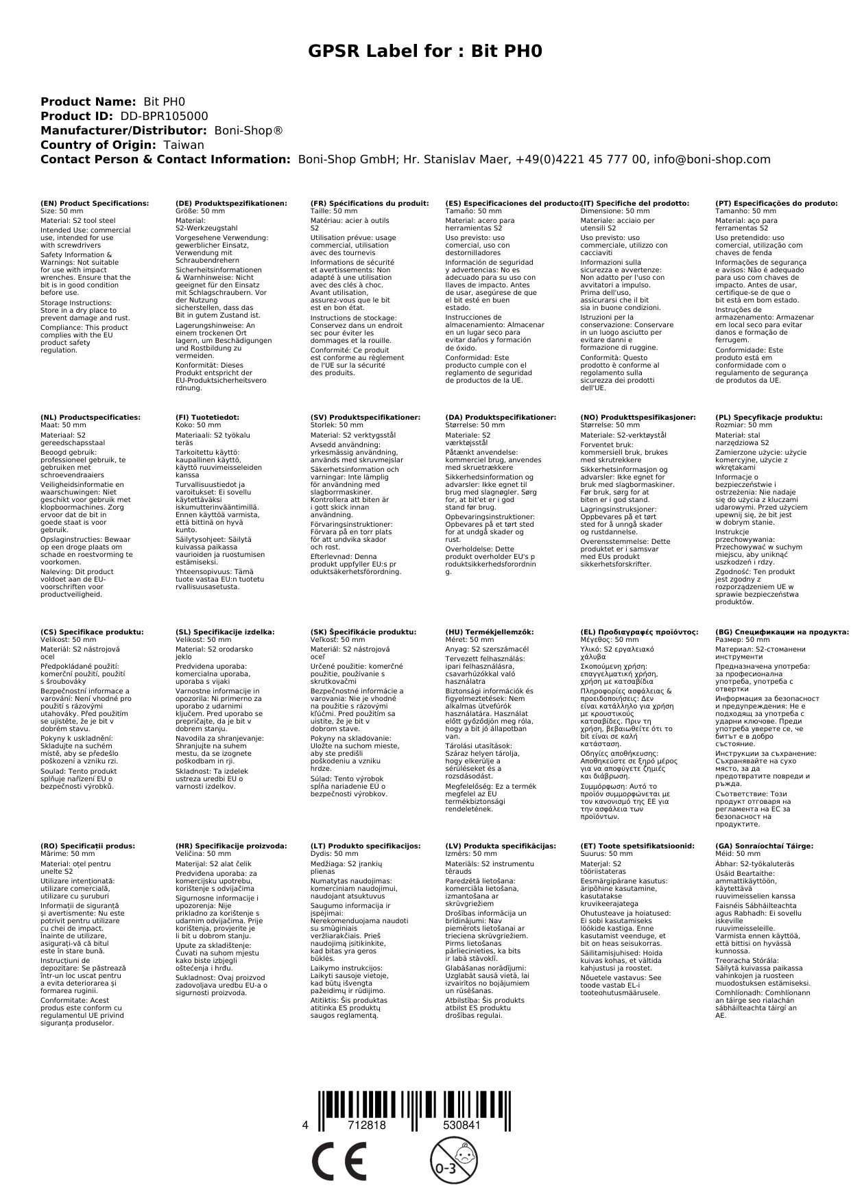 Tá an giotán PH0 ó Boni-Shop déanta as cruach S2 láidir agus cuireann sé cruas agus friotaíocht ard ar fáil duit. Le fad 50mm, is féidir leat áiteanna deacra a bhaint amach freisin. Cinntíonn an gléas 1/4 orlach comhtháthú éasca i do raon uirlisí atá ann cheana féin. Cén fáth go bhfuil sé seo tábhachtach duit: Faigheann tú uirlis fhadtéarmach agus iontaofa le haghaidh úsáide laethúla.