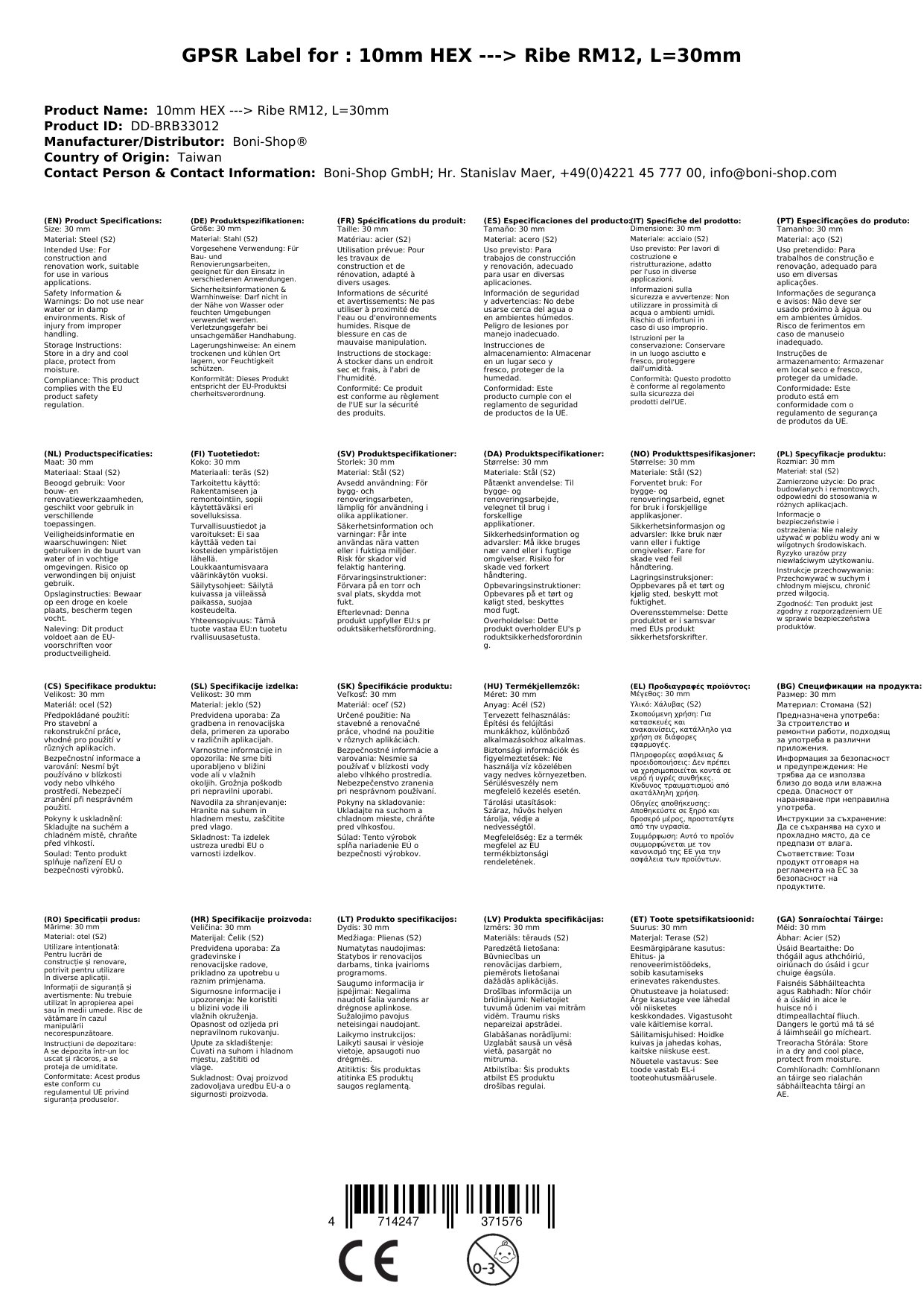 | SKU | BONI-DD-BRB33012 |