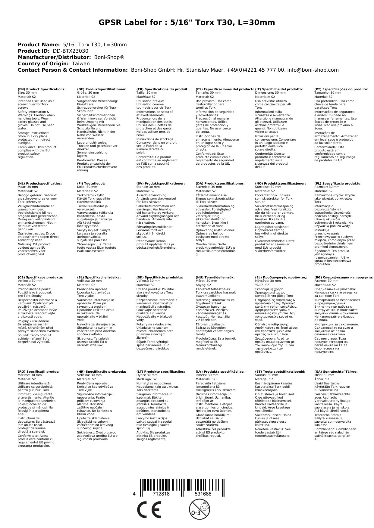 | Uimhir Chláir | BONI-DD-BTX23030 |
