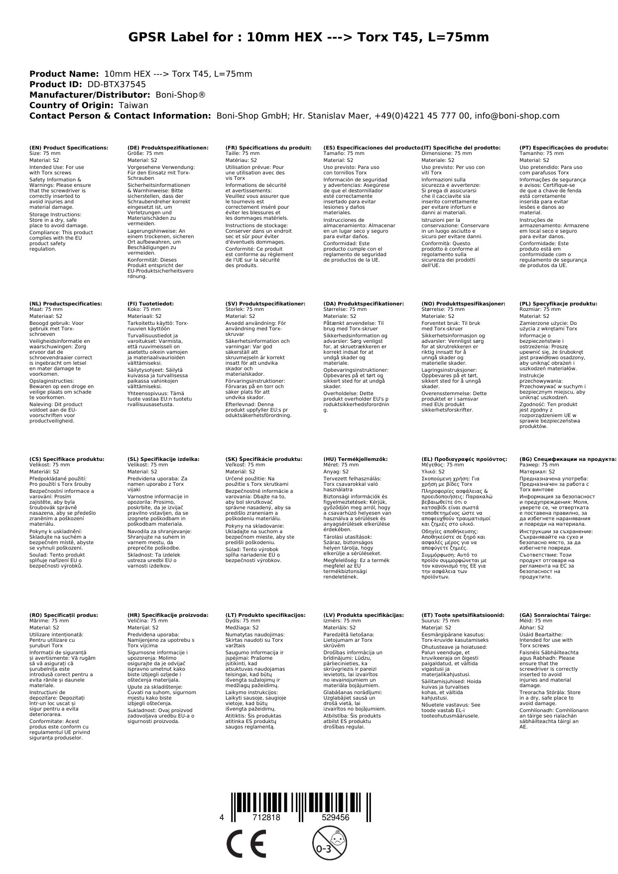 | Uimhir Ailt | BONI-DD-BTX37545 |