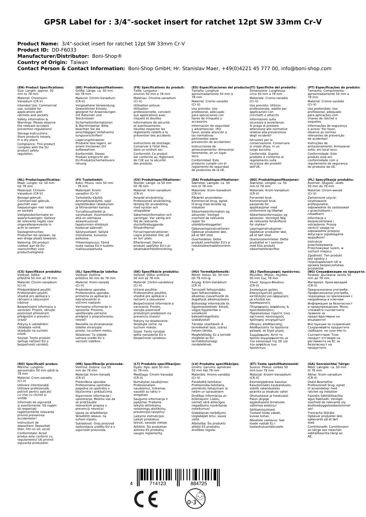 Cuir ceist chun níos mó a fhoghlaim faoin táirge3/4 Zoll Nuss 33mm, Cr-V Stecknuss, 12-Kant