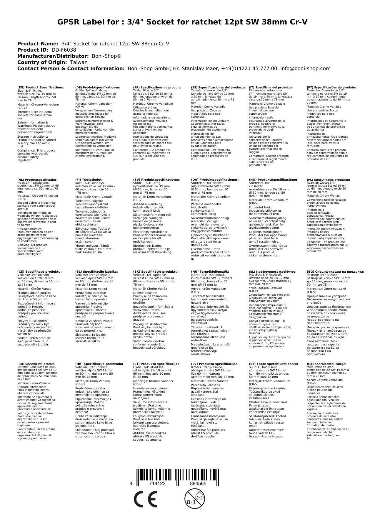 | Méid Eochair | 19 mm go 60 mm (12-thaobh) |