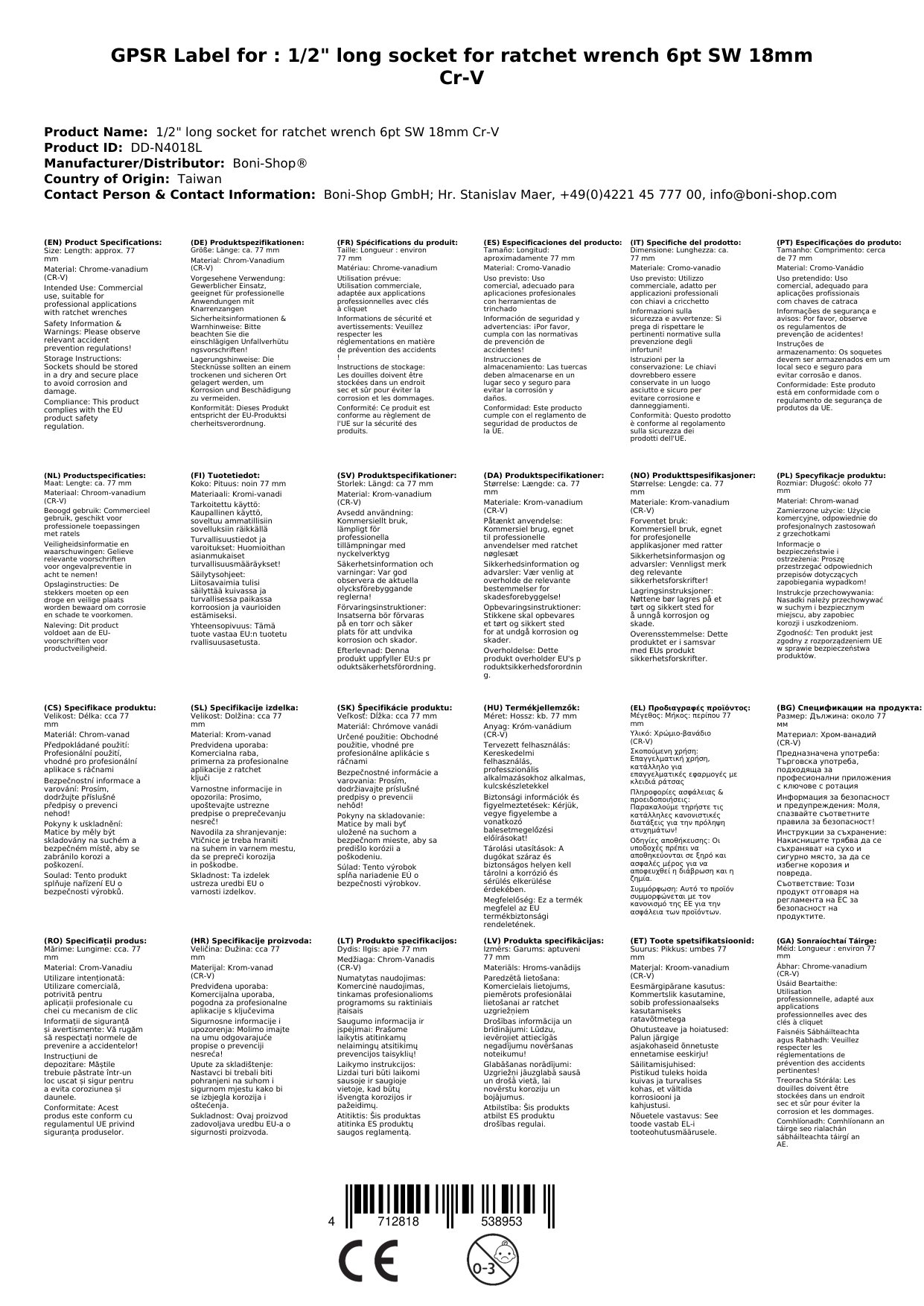 Cnó Soicéad 1/2 Orlach, Soicéad 18mm, Cr-V, 6 Thaobh, le haghaidh Ratchet