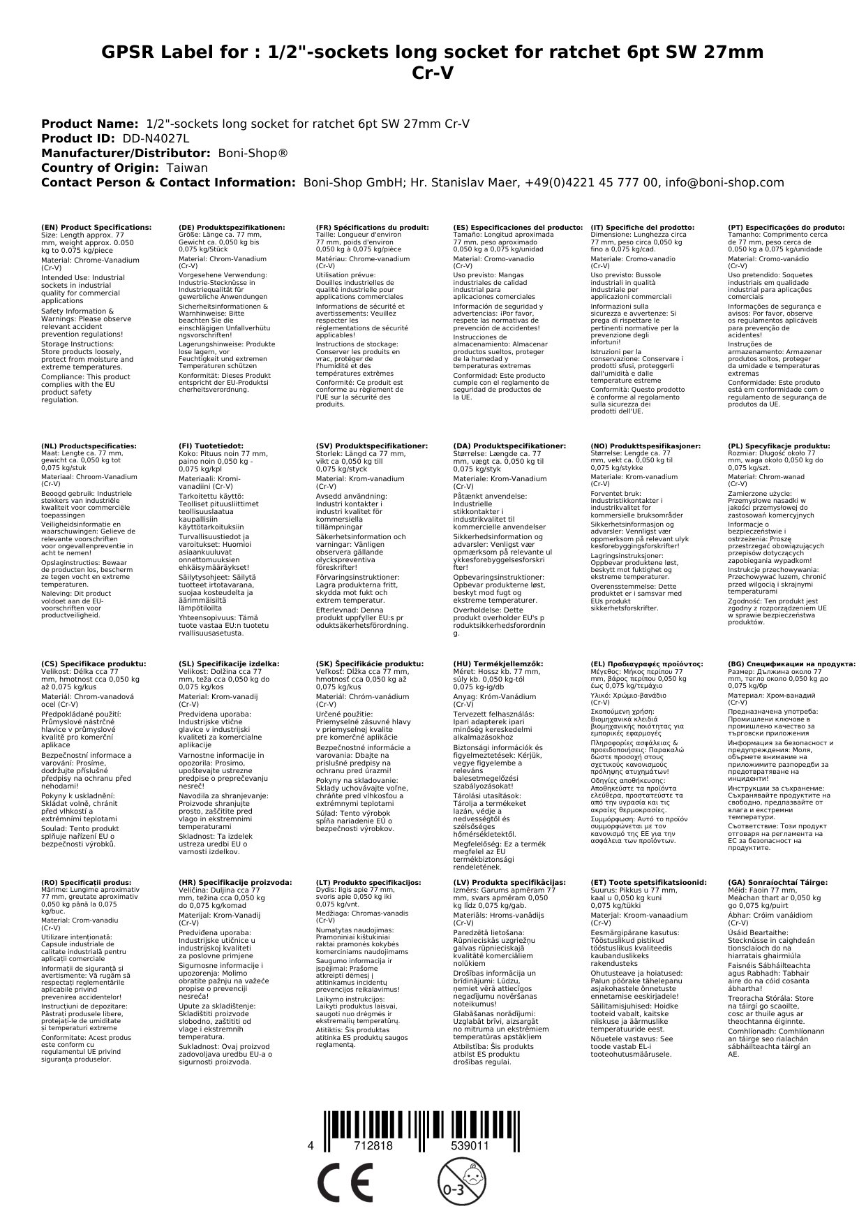 | SKU | BONI-DD-N4027L |