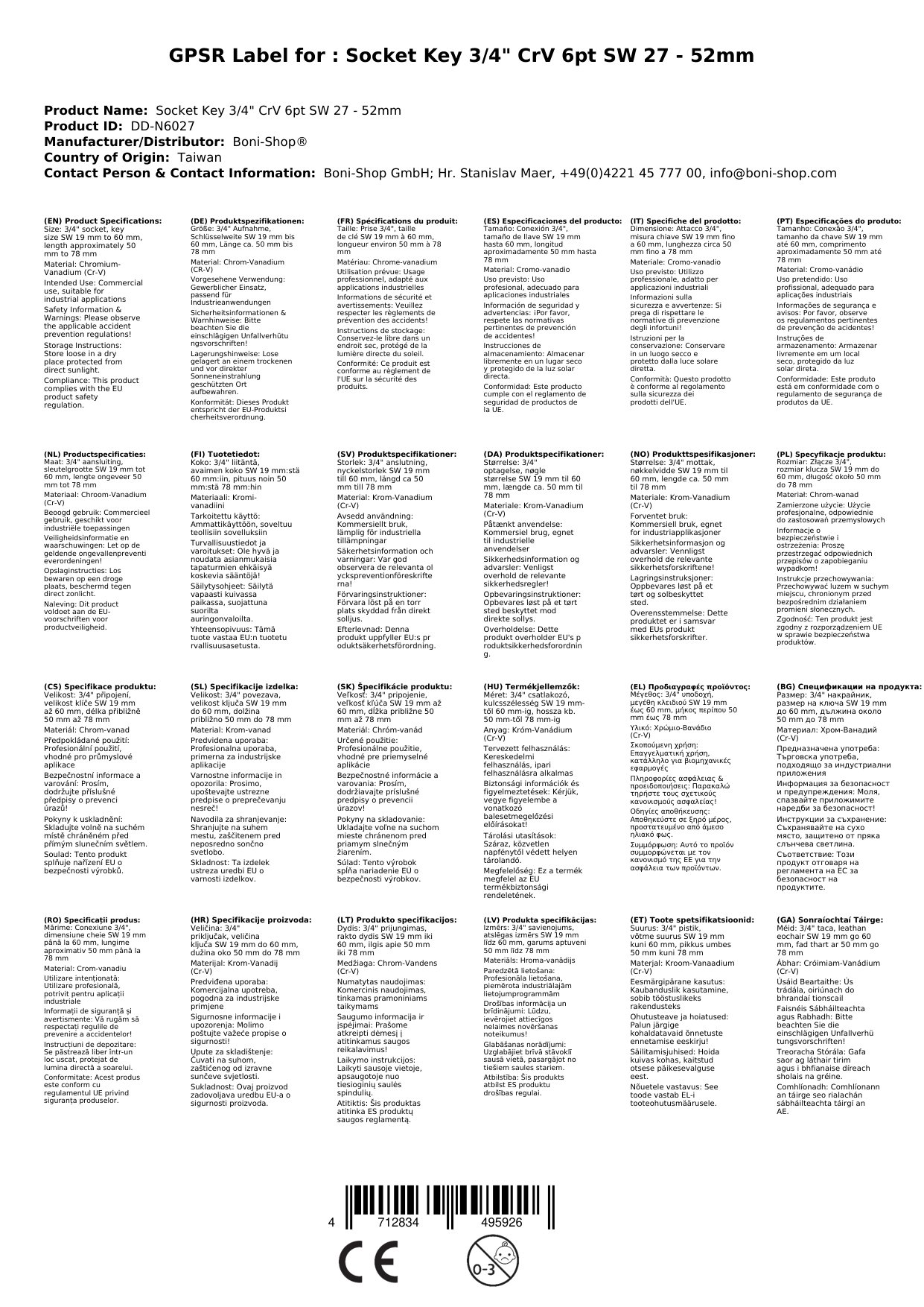 Cuireann an cnó soicéad tionsclaíoch seo an caighdeán is airde ar fáil duit le haghaidh úsáid tráchtála. Tá sé déanta as Cróimiam-Vanadium (CrV) láidir agus tá sé ar fáil le raon méideanna roghnach de 27 mm (6-thaobh le cosaint flange). Le fad de thart ar 52 mm agus meáchan de thart ar 0.222 kg/píosa, tá sé oiriúnach d’fheidhmchláir dhúshlánacha. Seo an fáth go bhfuil sé tábhachtach duit: Faigheann tú uirlis fhadtéarmach a oibríonn go hiontaofa fiú faoi ualach ard.
