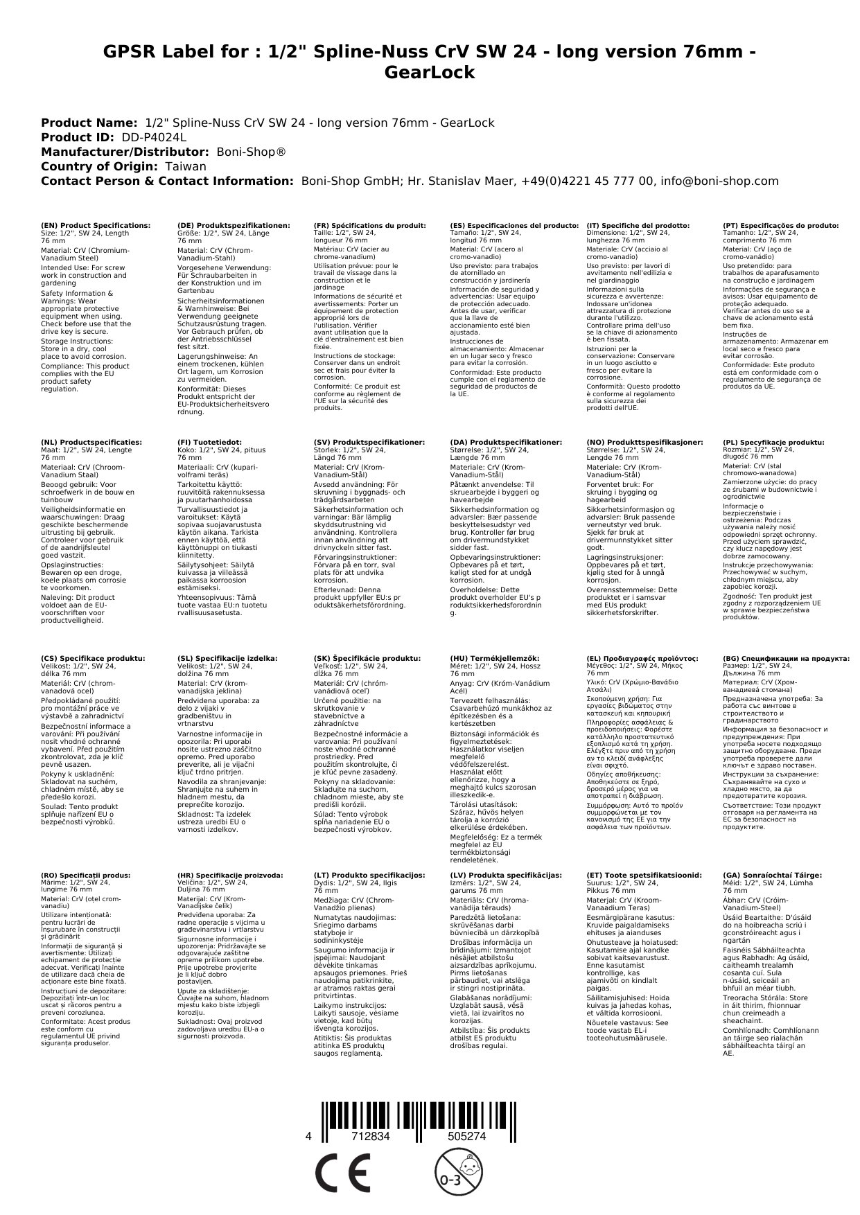 Tá an Cnó spline déanta as cruach Cróimiam-Vanadium (CrV) láidir, rud a chinntíonn saol seirbhíse fada agus ard-athléimneacht. Le méid eochair 24 mm agus dearadh fada 76 mm, tá sé oiriúnach go hidéalach le haghaidh oibre in áiteanna atá deacair a bhaint amach. Cinntíonn próifíl GearLock tarchur cumhachta is fearr agus cosnaíonn sé cinn scriú. Cén fáth go bhfuil sé seo tábhachtach duit: Is féidir leat brath ar an gCnó spline, fiú le tascanna dúshlánacha, agus damáiste a sheachaint do do phíosaí oibre.