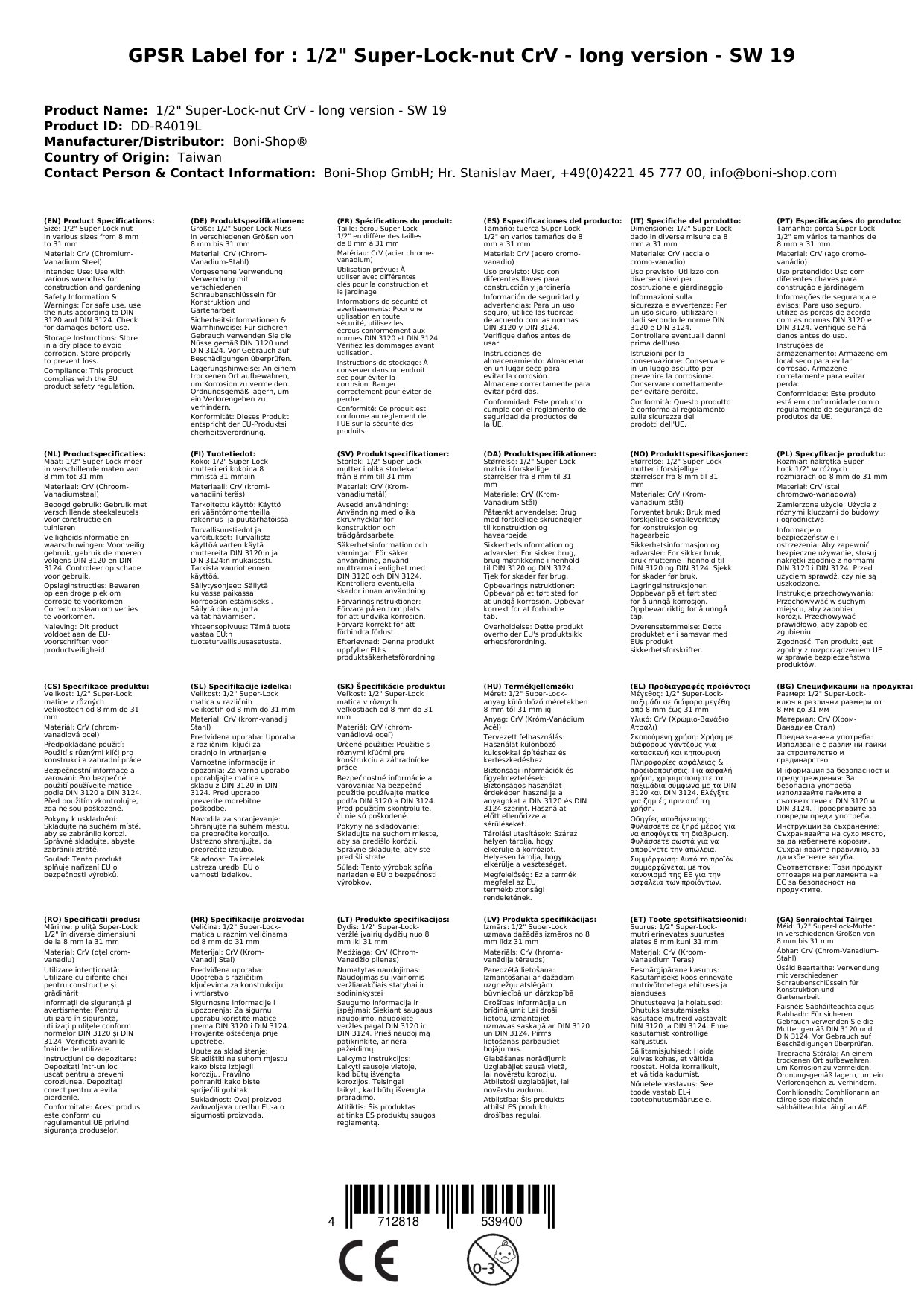 Is é ár gCnó Super-Lock 1/2 orlach CrV do chomhpháirtí iontaofa le haghaidh obair scriú éilitheach. Seasann sé le chasmhóiminte suas le 200 Nm agus cuireann sé saolré fada ar fáil a bhuíochas leis an cóimhiotal cruach CrV. Coscann an fheidhm Super-Lock duillín, rud atá tábhachtach go háirithe le scriúnna greamaithe. Cén fáth a bhfuil sé seo tábhachtach duit: Is féidir leat brath ar an bhfíric go n-oibríonn an cnó seo go cruinn fiú faoi ualach ard agus nach ndéanann sé damáiste do na scriúnna.